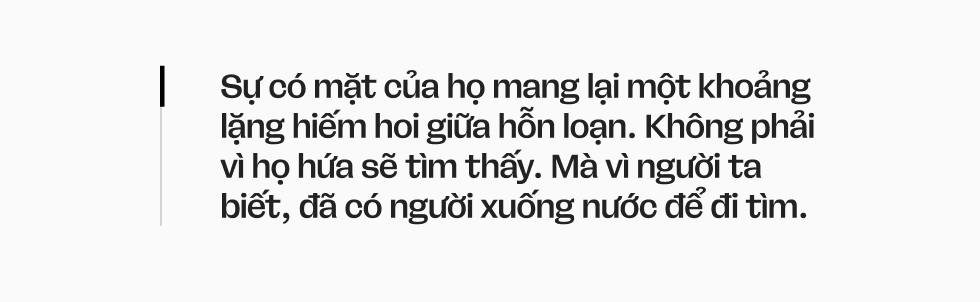 Sự có mặt của họ mang lại một khoảng lặng hiếm hoi giữa hỗn loạn. Không phải vì họ hứa sẽ tìm thấy. Mà vì người ta biết, đã có người xuống nước để đi tìm.