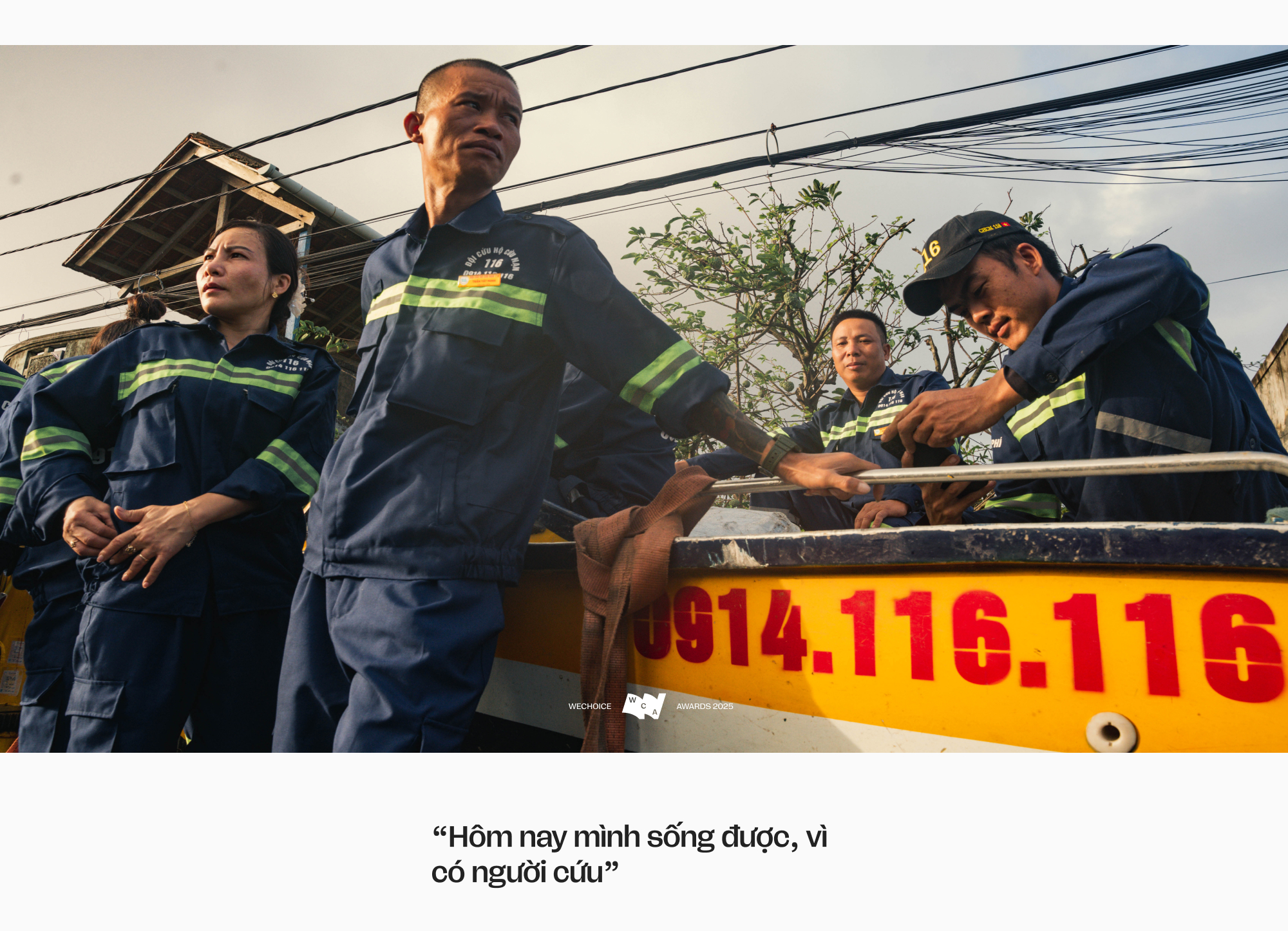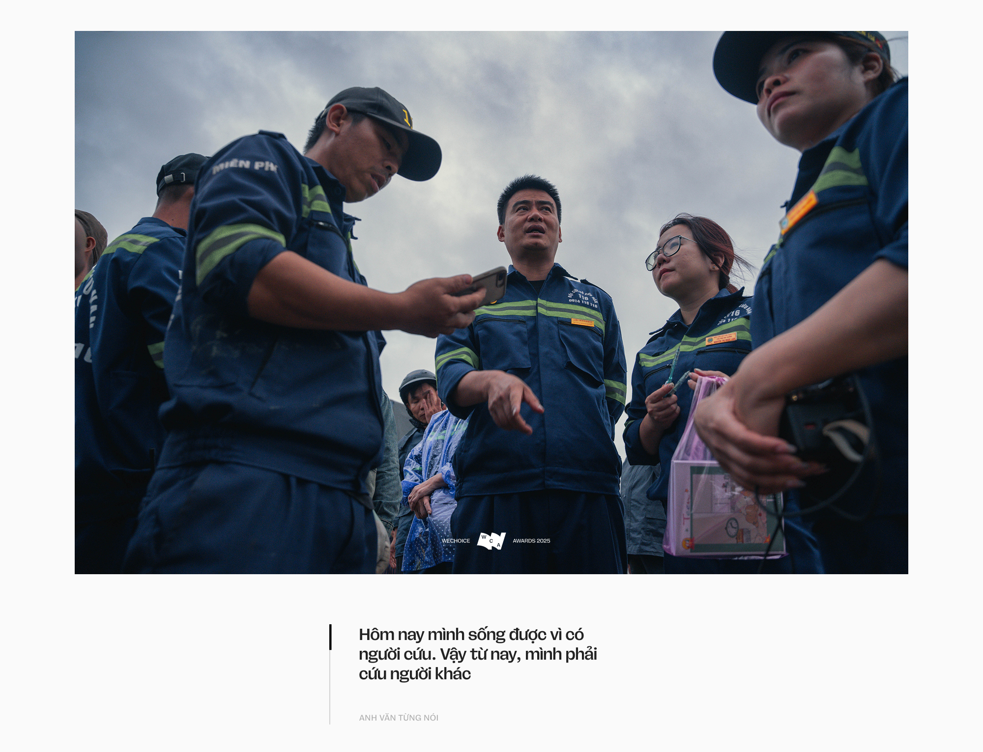 Như anh Tùng - người đàn ông từng sống trong chùa nhiều năm, quen với im lặng và sự buông bỏ. Trong một lần tìm kiếm ở Thái Nguyên, anh tận mắt chứng kiến thi thể một đứa trẻ trôi dạt hơn ba cây số theo dòng nước. Không ai bảo anh phải ở lại, nhưng từ khoảnh khắc ấy, anh không rời đi nữa. Có chuyến cứu hộ, Tùng cùng đồng đội đưa được năm người ra khỏi một căn nhà bị cô lập giữa biển nước. Một cụ bà hơn 90 tuổi được đặt vào chiếc chậu nhựa, buộc dây kéo qua dòng lũ. Sau hôm đó, cả đội phải nghỉ gần một tuần vì ngộ độc nước lũ.
