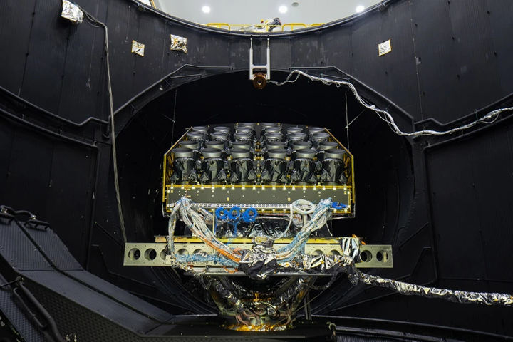 Mô-đun tải trọng của tàu vũ trụ PLATO thuộc ESA đang được kiểm tra trong buồng chân không nhiệt, chuẩn bị cho sứ mệnh săn tìm hành tinh giống Trái Đất vào năm 2026. (Nguồn: ESA-Remedia)