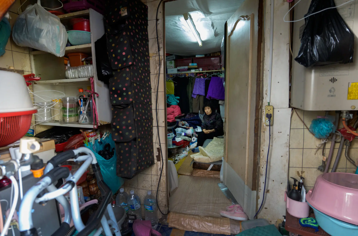Ở tuổi 85, bà Lee đã sống gần 40 năm trong một căn nhà tạm chật hẹp chỉ vỏn vẹn một phòng, thậm chí không có nhà vệ sinh. Nơi bà sinh sống là Guryong, một khu "ổ chuột" rộng khoảng 287 nghìn mét vuông, lọt thỏm giữa những tòa nhà cao tầng hiện đại và khu dân cư của giới siêu giàu Hàn Quốc.