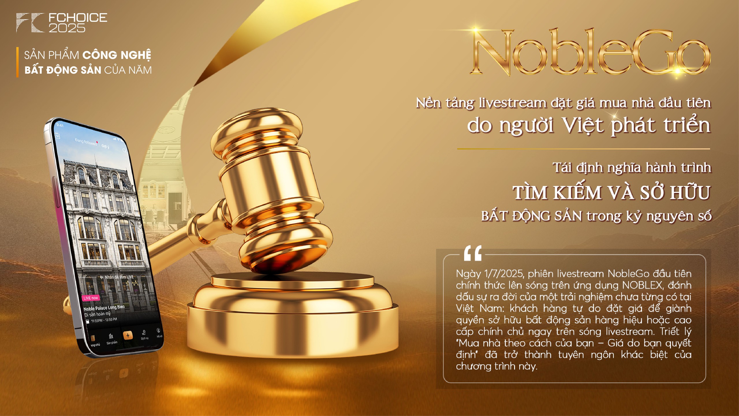 Đây là những trải nghiệm đầu tiên khi nói về NobleGo - nền tảng livestream đặt giá mua nhà tiên phong do người Việt phát triển, và cũng là livestream bất động sản đầu tiên được phát sóng song song trên cả nền tảng số và sóng truyền hình quốc gia. Khác với phần lớn các hoạt động livestream thương mại thường phát sóng trên các nền tảng nước ngoài, NobleGo được tích hợp trên NOBLEX App – một siêu ứng dụng kết nối thông tin và giao dịch đa lĩnh vực, hội tụ các trụ cột tài chính, công nghệ và dịch vụ bất động sản, với sự hỗ trợ đắc lực của công nghệ AI, do Tập đoàn công nghệ Unicloud (thuộc Sunshine Group) nghiên cứu xây dựng và vận hành.