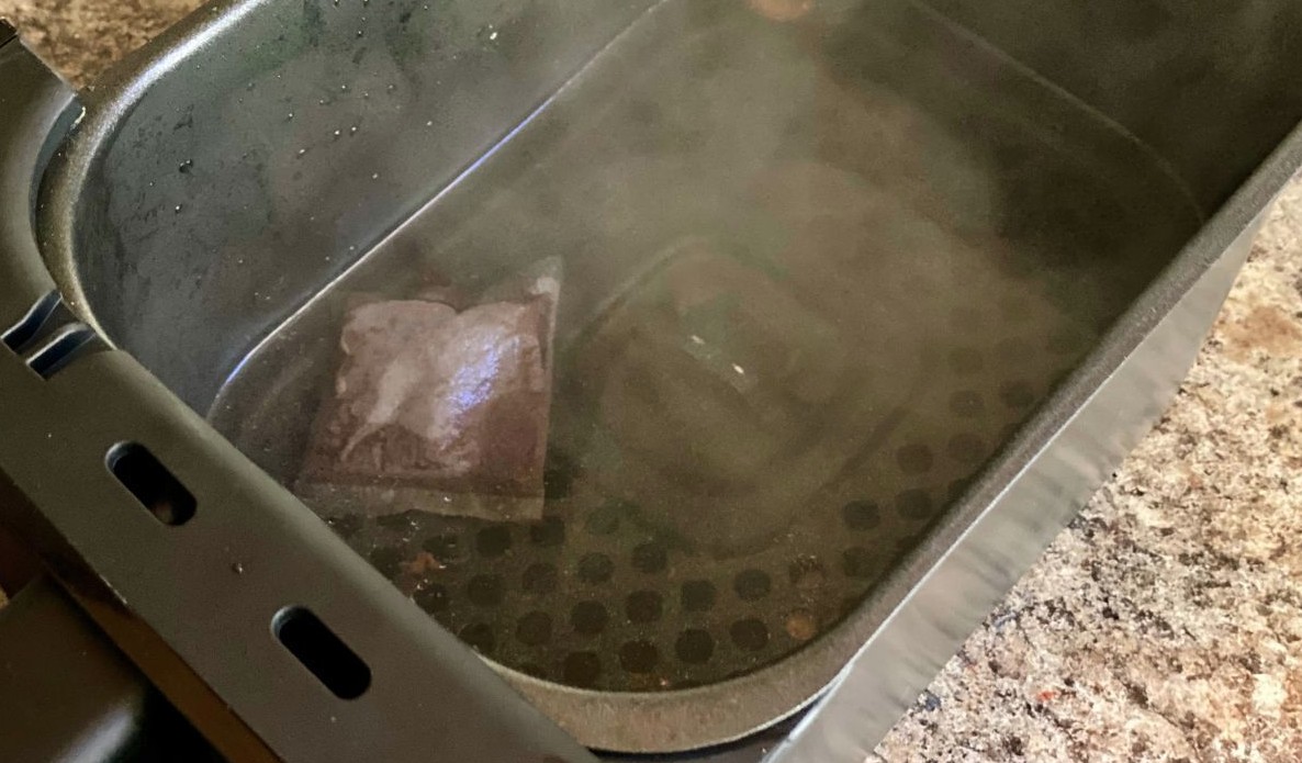 Angela thử dùng túi trà để vệ sinh nồi chiên không dầu và nhận kết quả bất ngờ. (Ảnh: Angela Patrone)