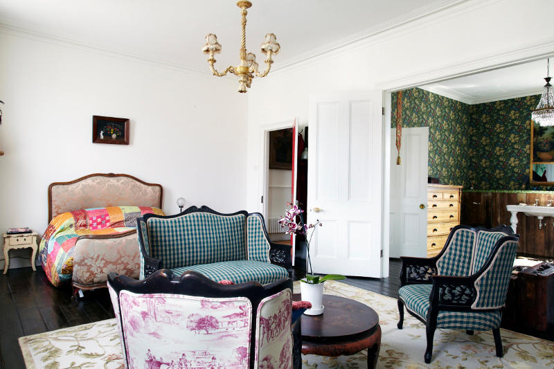 Bộ ghế sofa với họa tiết vải kẻ sọc mang đến vẻ đẹp giản dị cho phòng ngủ