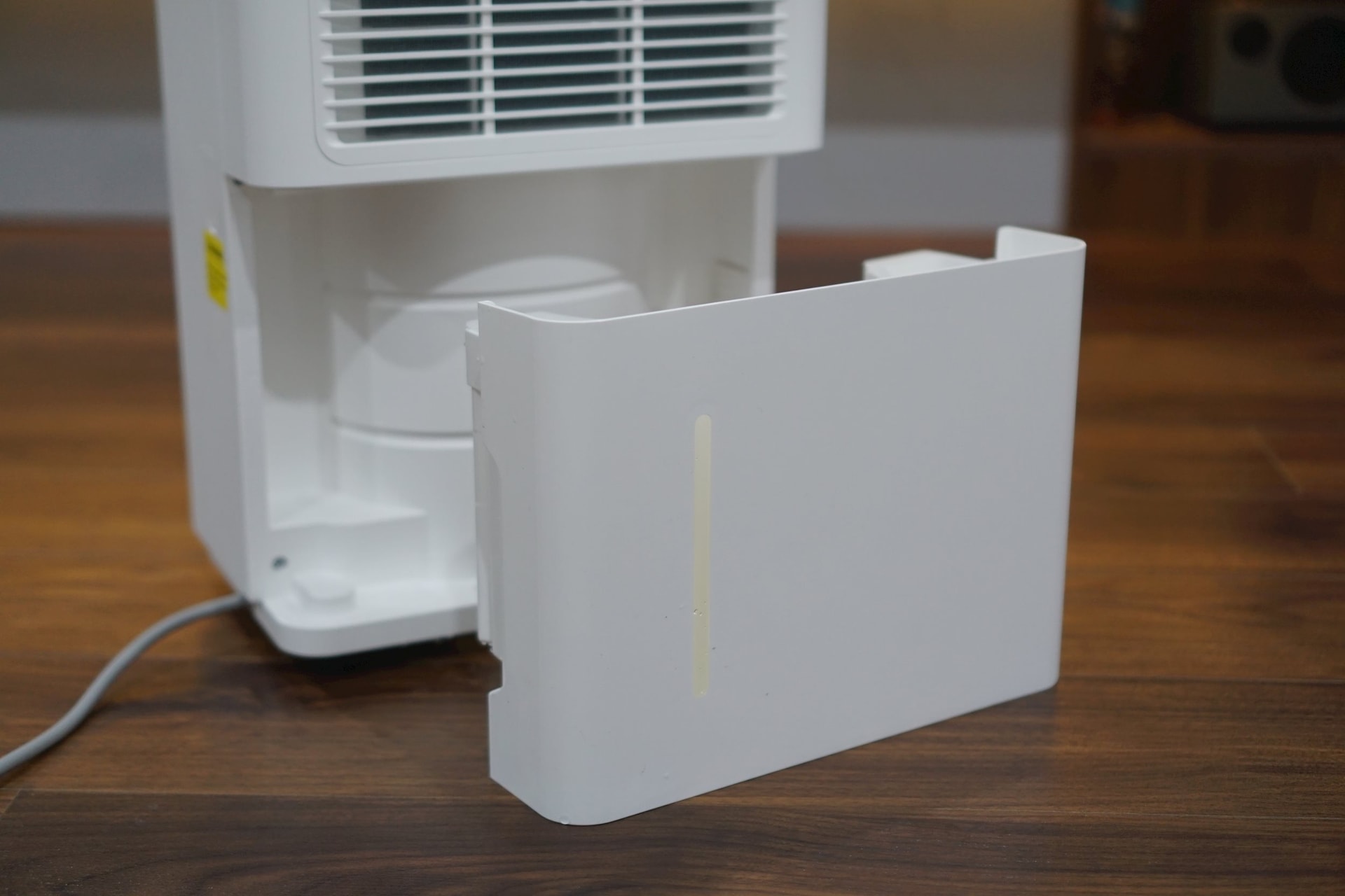 Cảm giác nhấc chiếc bình đựng 2,5L nước đi đổ chỉ sau vài tiếng sử dụng thực sự rất “đã” và đôi lúc khiến bạn tự hỏi “nước ở đâu mà nhiều thế”. Có một điểm tôi chưa thực sự hài lòng với chiếc máy này là bình đựng nước hơi nhỏ. Nếu bật liên tục trong nhà và không để ý, bình nước có thể đầy và khi đó máy không hoạt động được nữa – mất tính liên tục. Tuy nhiên, đây là điều phải đánh đổi để có được thiết kế nhỏ gọn của máy. Bạn có thể khắc phục bằng cách nối đường ống có sẵn để nước thoát liên tục.