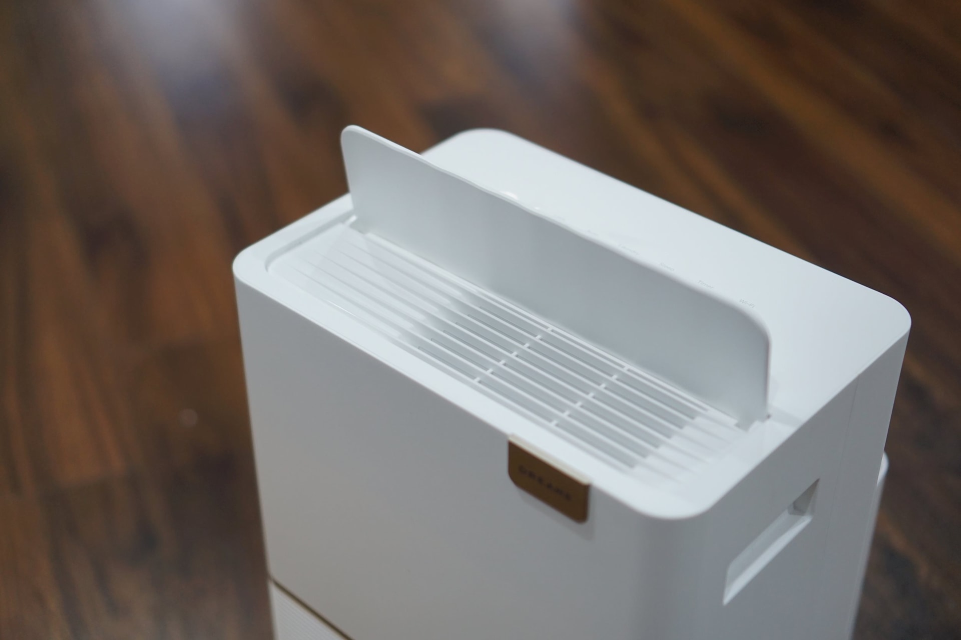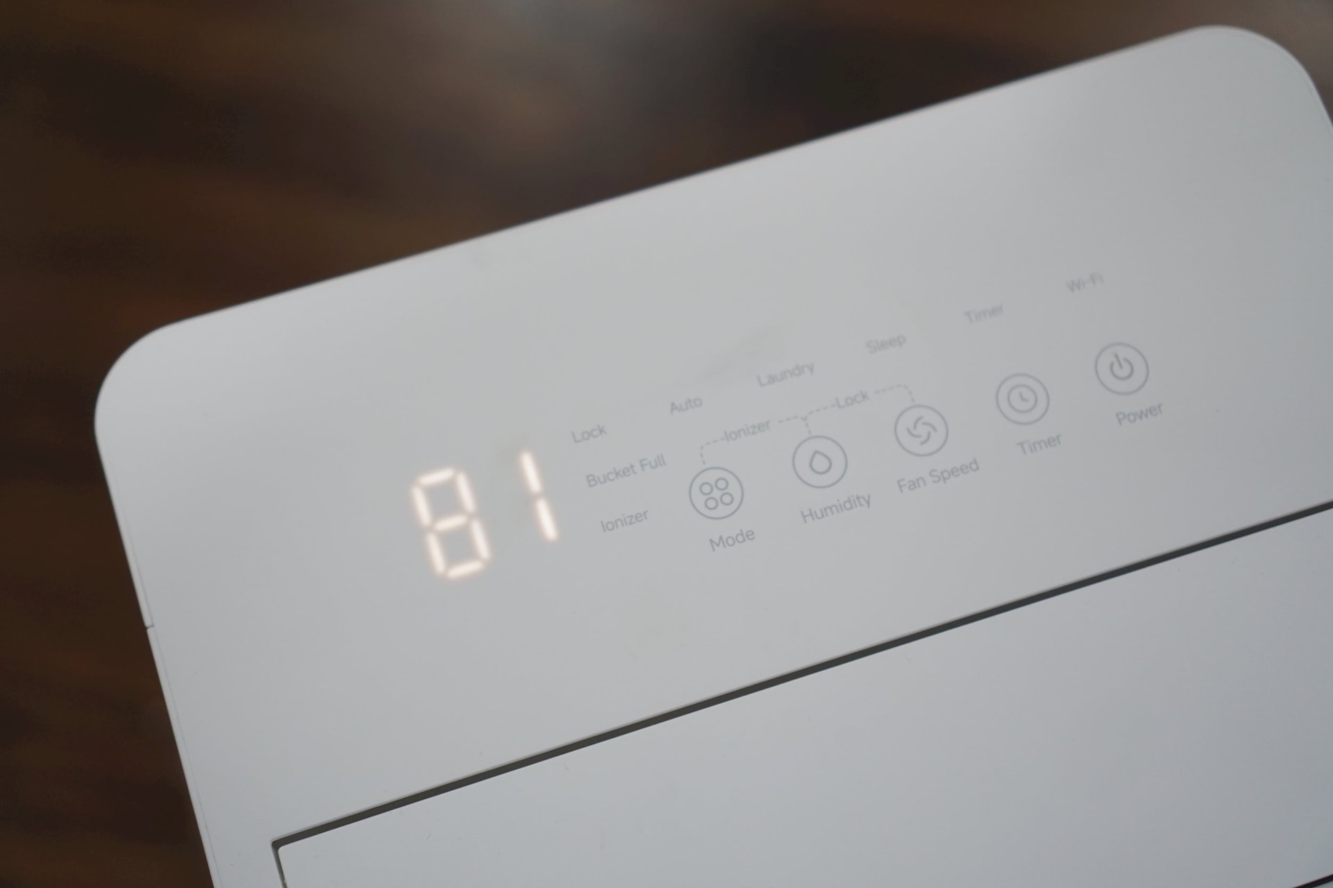 Thân máy có kích thước khoảng 290 x 458 x 205 mm – đủ cao để tối ưu luồng khí nhưng vẫn gọn khi đặt sát tường hoặc trong góc phòng. Tính ra, diện tích mà nó tiêu tốn chỉ đúng bằng một tờ giấy A4. Tông trắng trung tính giúp nó hòa vào nội thất thay vì trở thành một nhựa kết hợp kim loại loại lạc lõng. Mặt trước là màn hình LED hiển thị độ ẩm theo thời gian thực, cho phép người dùng nhìn thấy con số thay đổi từng giờ cùng với các nút cài đặt quen thuộc xuất hiện trên nhiều mẫu máy hút ẩm hiện nay.