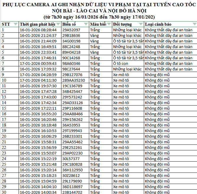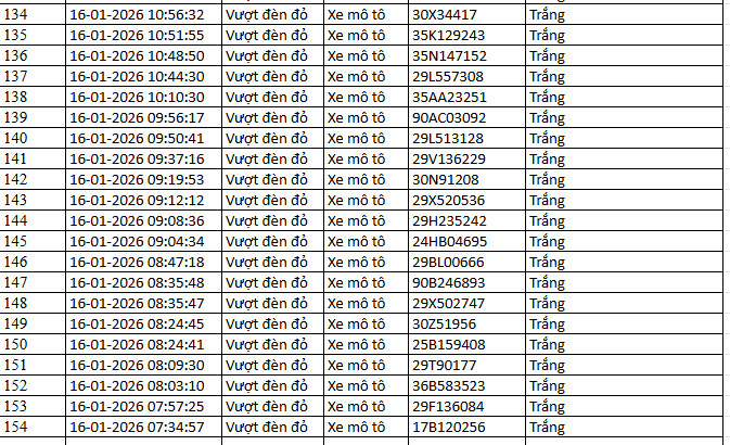 Từ 12h00’ ngày 16/1/2026 đến 12h00’ ngày 17/1/2026, đã phát hiện 154 trường hợp xe ô tô, xe máy vi phạm.