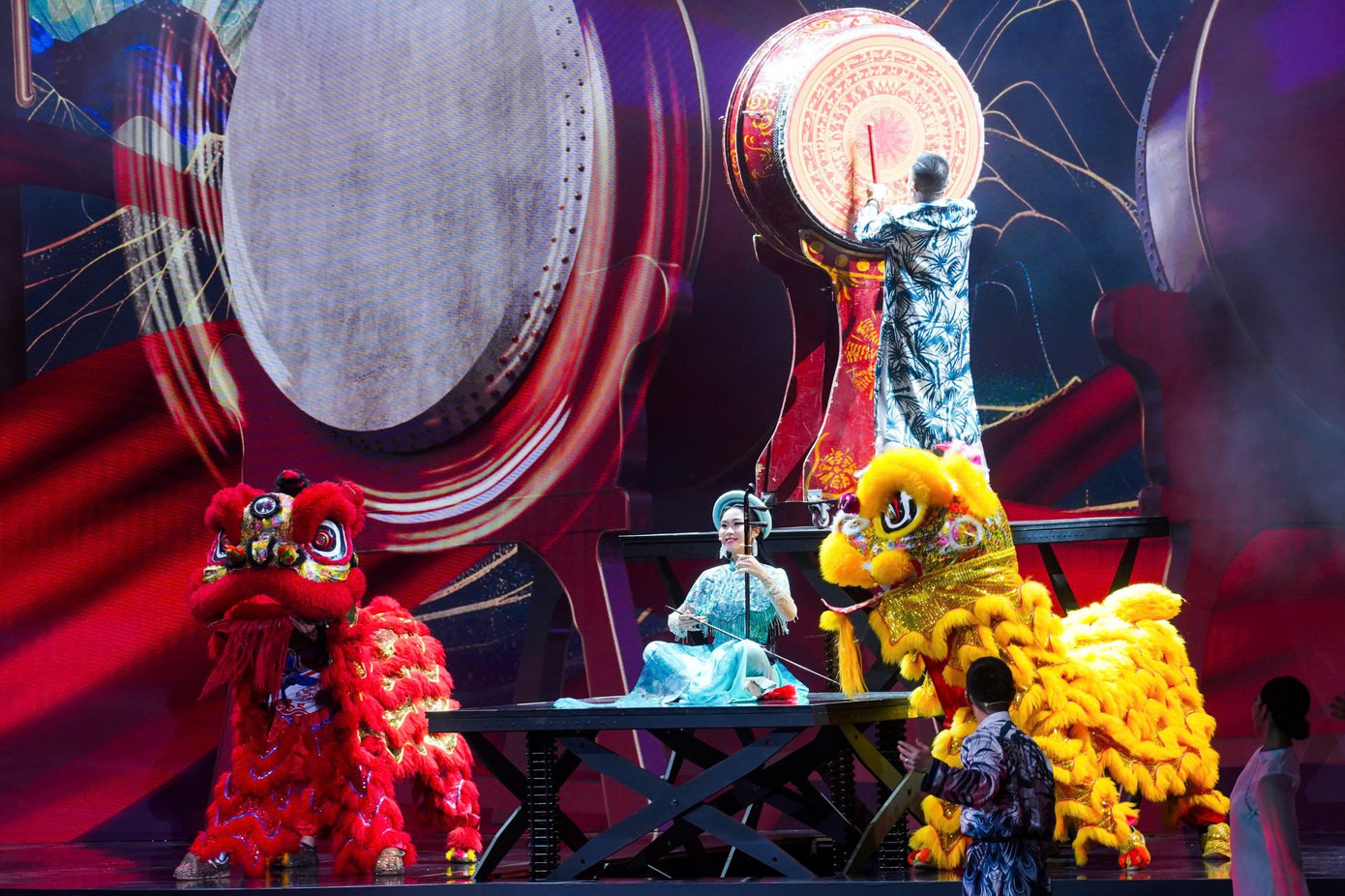 NSND Tự Long tái diễn màn đánh trống hội tại Xuân Phát Tài 16. Ảnh: Đức Nguyễn.