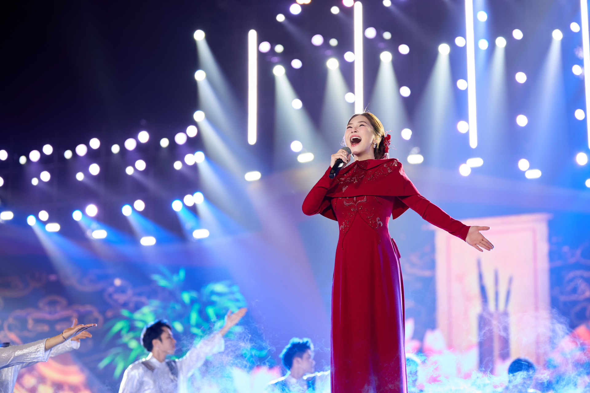trong chương trình nghệ thuật chào mừng Đại hội Đảng lần thứ XIV tại Quảng Ninh, Hương Tràm là ca sĩ được lựa chọn thể hiện ca khúc Việt Nam tinh hoa (Ảnh: FBNV)