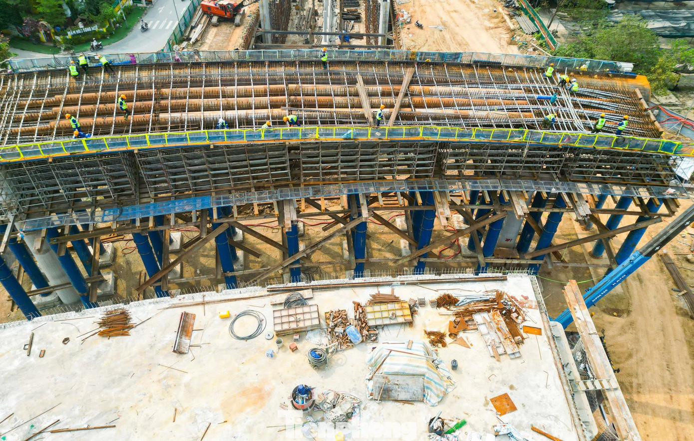 Diện mạo nút giao dần hình thành với hệ thống trụ cầu và các nhánh tuabin đã hoàn thiện. Song song đó, hạng mục hầm chui từ đường Hoàng Tùng cũng đang được tập trung nhân lực thi công.