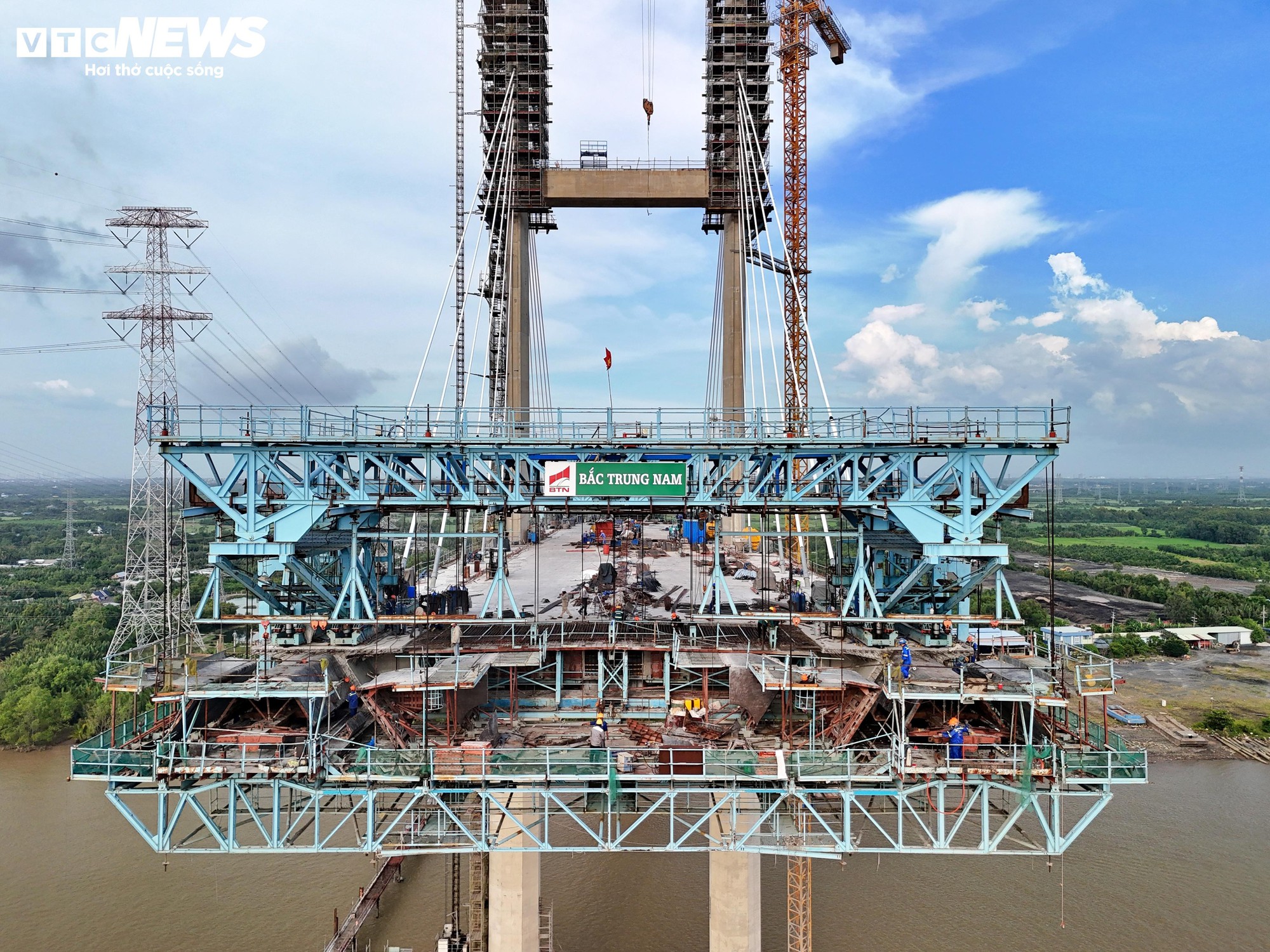 Trong khi đó, trụ chính P15 phía Cần Giờ cũng đã hoàn thành thi công bó cáp dây văng thứ 5 và đang tiếp tục triển khai bó cáp thứ 6, cho thấy tiến độ thi công các hạng mục then chốt của cầu Phước Khánh đang được đẩy nhanh trên cả hai phía công trình.
