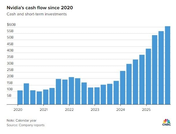 Hãng tin CNBC cho hay Nvidia đang ở vào thời điểm hiếm có trong lịch sử ngành công nghệ: sở hữu một núi tiền mặt lớn đến mức chính công ty cũng phải tự hỏi sẽ làm gì với nó.