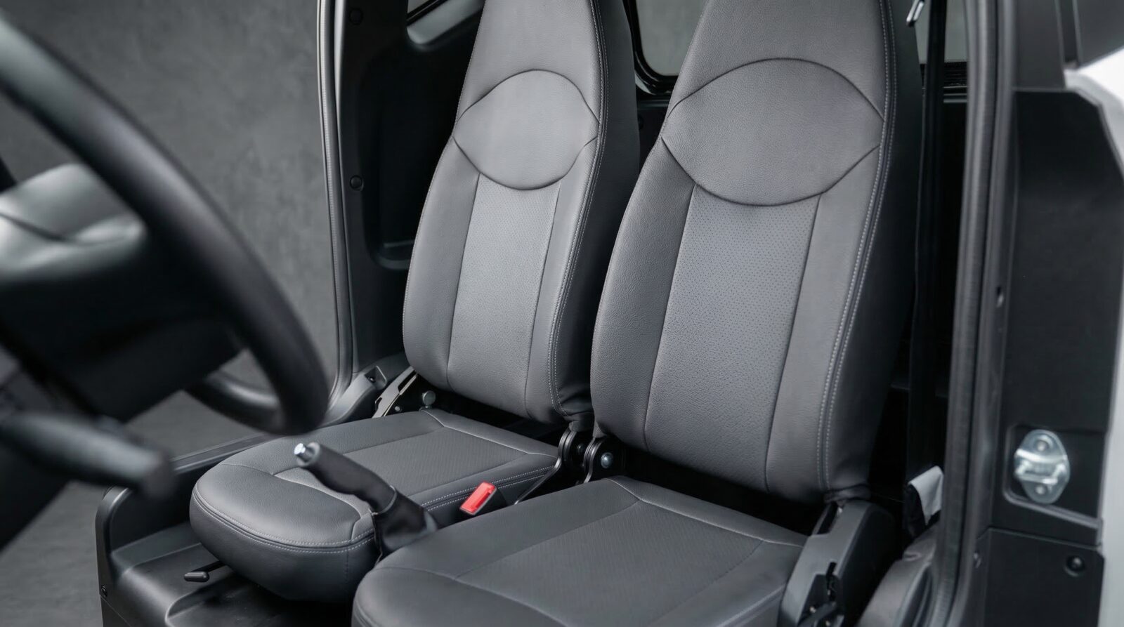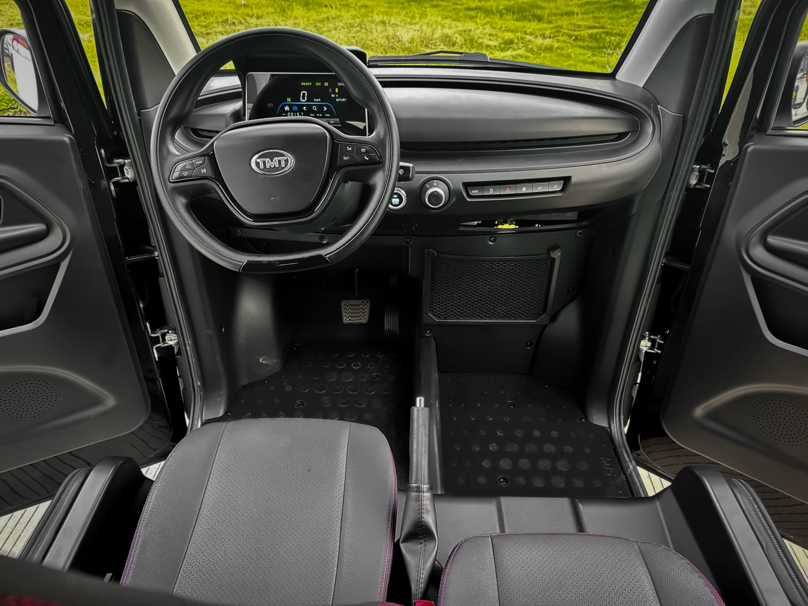 Khoang cabin của xe được thiết kế tối giản cho hai hành khách với bảng điều khiển trang bị màn hình màu 5 inch hiển thị dung lượng pin, tốc độ và chế độ lái. Dù không có màn hình giải trí trung tâm, xe vẫn tích hợp sẵn cổng sạc USB, giá đỡ điện thoại, kính chỉnh điện và hệ thống điều hòa nhiệt độ tiêu chuẩn.