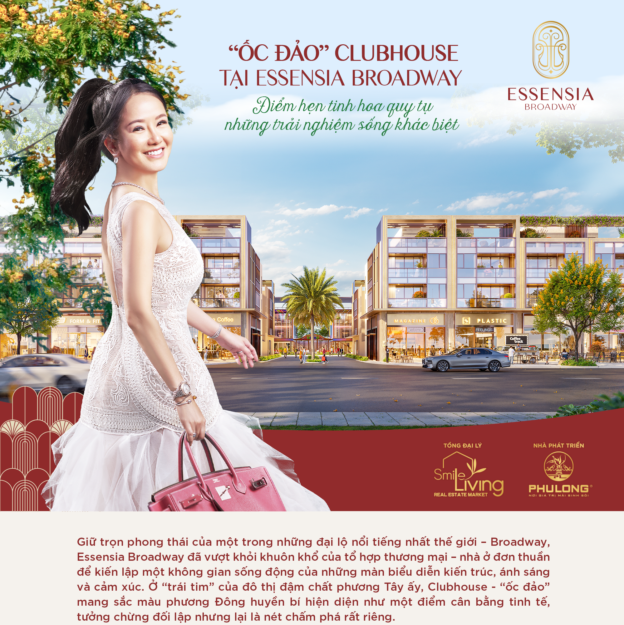 Trong tổng thể ấy, tổ hợp tiện ích Broadway Clubhouse hiện diện như tâm điểm trải nghiệm của toàn khu. Việc Nhà phát triển Phú Long đặt Clubhouse ở trái tim dự án không chỉ là một lựa chọn về mặt quy hoạch mà còn là tuyên ngôn về lối sống. Khi tinh thần phương Đông được tiết chế và đặt vào một bối cảnh đô thị mang cảm hứng Broadway – biểu trưng cho nhịp sống hiện đại phương Tây – sự giao thoa ấy sẽ mở ra một trải nghiệm thị giác chưa từng có cho cư dân hay bất kỳ vị khách nào vô tình có dịp ghé ngang.