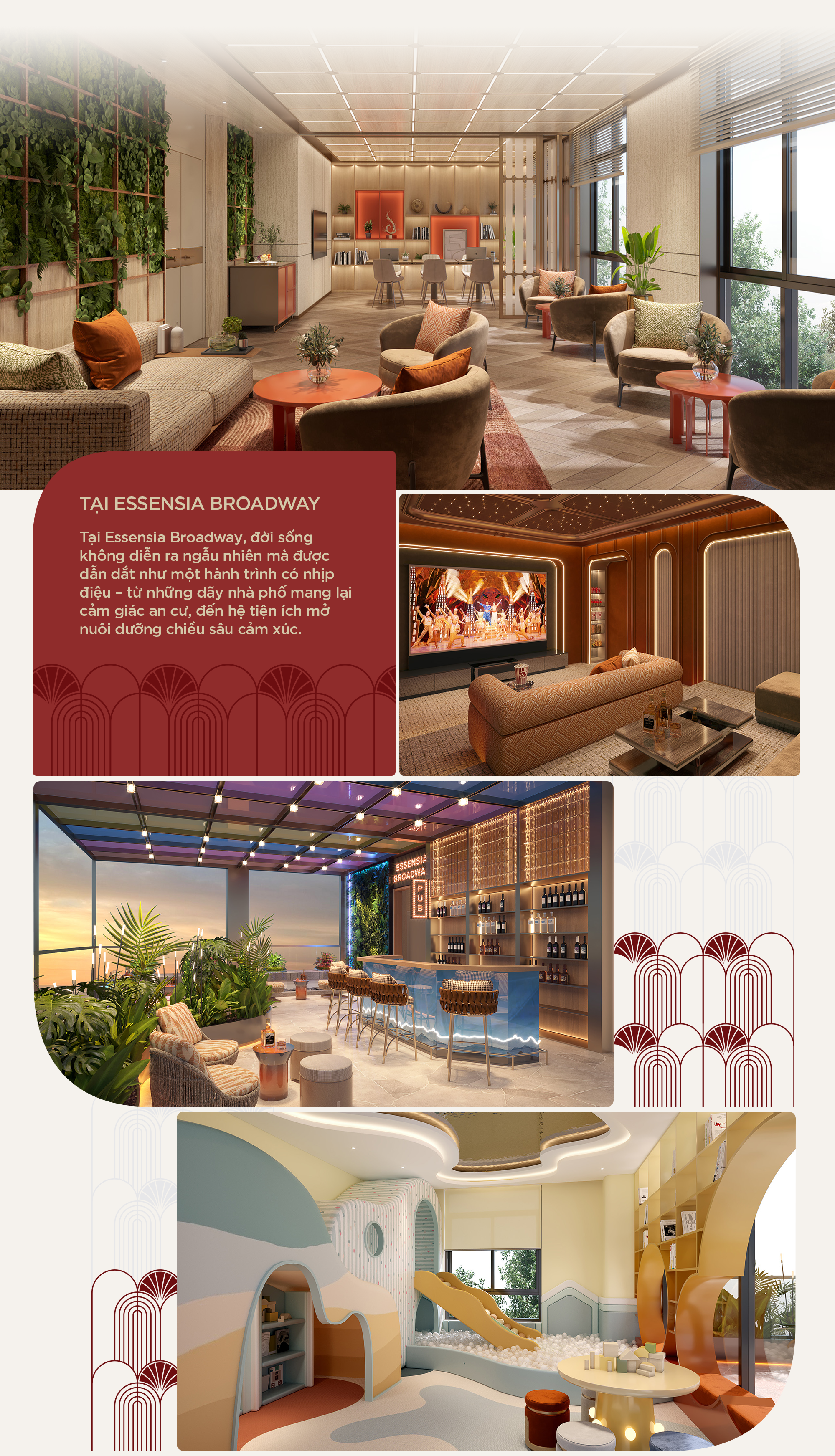 Theo cách Essensia Broadway được kiến tạo, đời sống không diễn ra ngẫu nhiên mà được dẫn dắt như một hành trình có nhịp điệu – từ những dãy nhà phố mang lại cảm giác an cư, đến hệ tiện ích mở nuôi dưỡng chiều sâu cảm xúc. Trong vòng tròn Art-Urban ấy, kết nối và riêng tư không hề đối lập mà song hành – để mỗi cư dân có thể sống trọn vẹn giữa năng động và an hòa, ngay trong lòng khu phố Broadway.