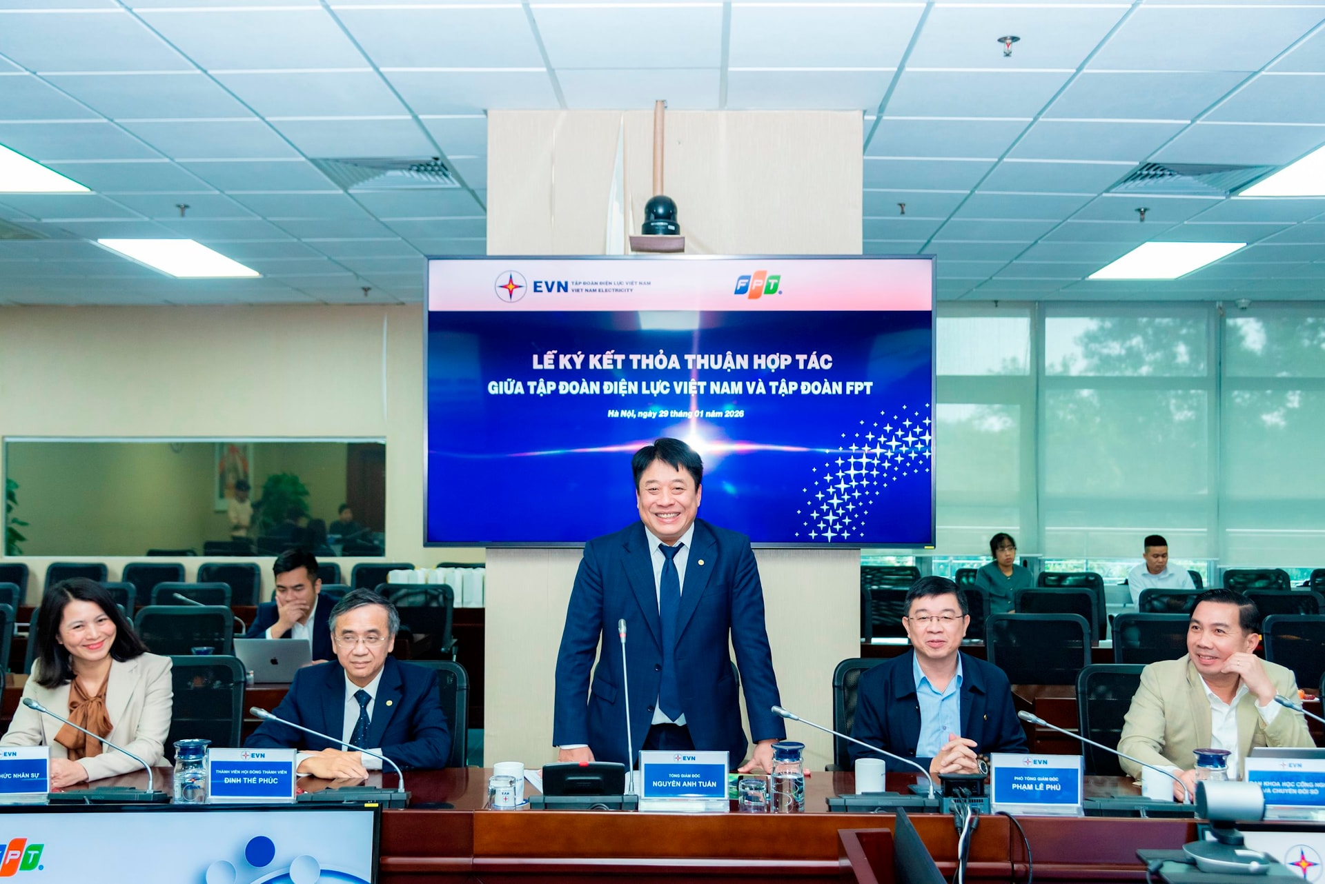 Tham dự sự kiện, về phía Tập đoàn Điện lực Việt Nam (EVN) có: ông Nguyễn Anh Tuấn – Tổng Giám đốc; cùng thành viên Hội đồng Thành viên, Phó Tổng Giám đốc; lãnh đạo ban chức năng của Tập đoàn. Về phía FPT có ông Trương Gia Bình – Chủ tịch HĐQT Tập đoàn FPT, ông Nguyễn Văn Khoa – Tổng giám đốc Tập đoàn FPT, Lãnh đạo các công ty thành viên Tập đoàn FPT.