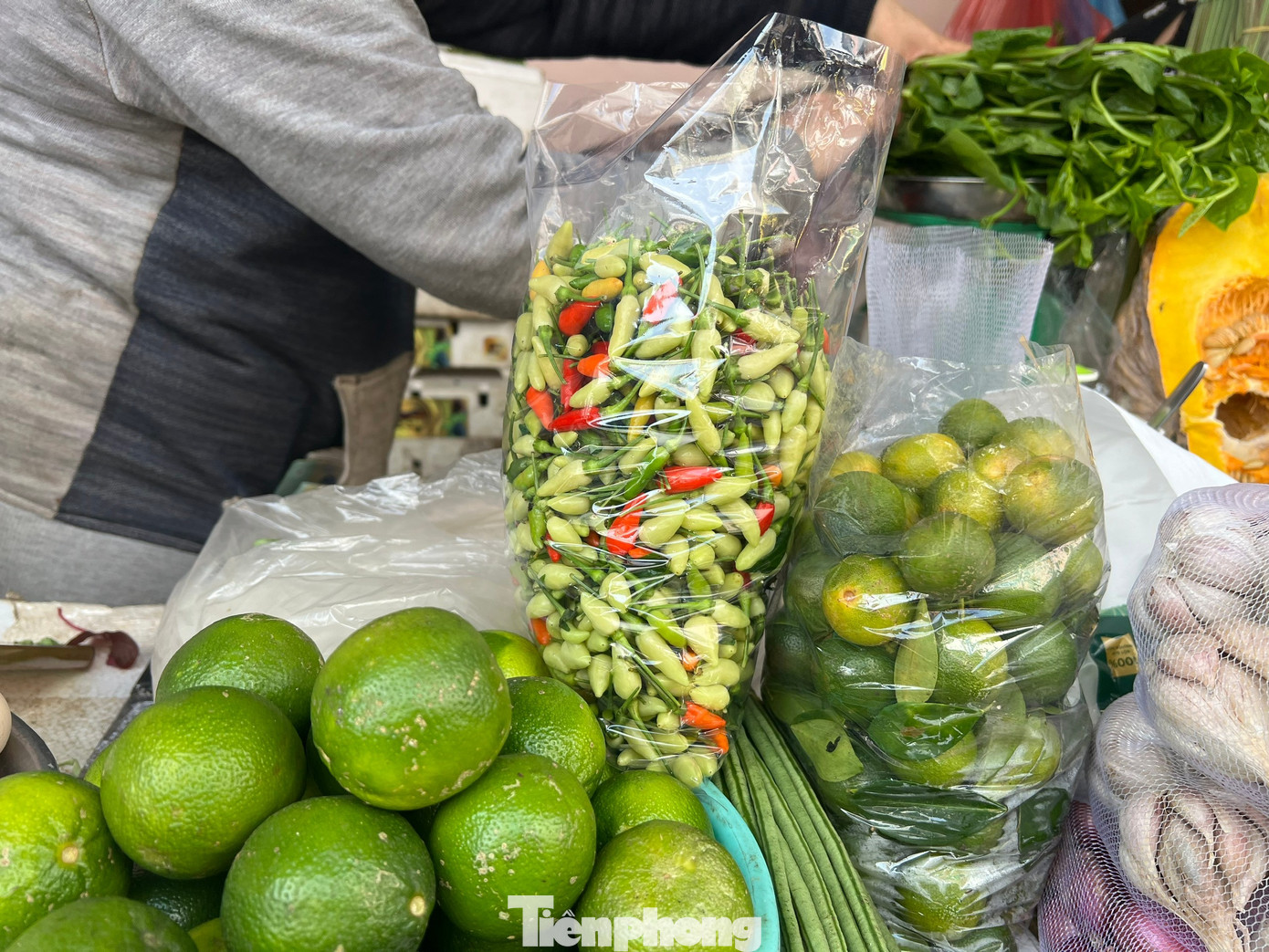 Ngày 24/12, trên đường Cách Mạng Tháng Tám (TPHCM), một điểm bán lẻ ớt xiêm xanh ngay trên vỉa hè thu hút khách đi đường. Người bán chỉ bày chiếc thùng xốp nhỏ, bên trên ớt tươi được chia thành từng bịch nhỏ bán với giá 10.000 đồng/bịch.