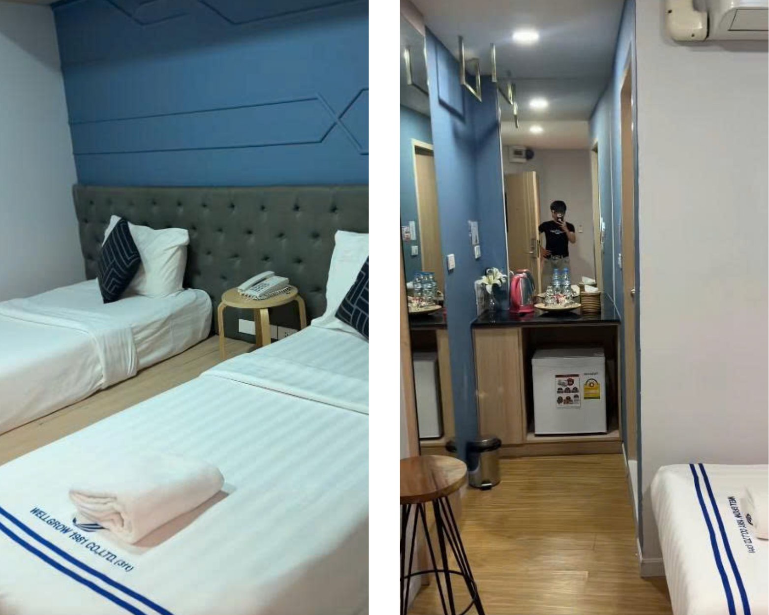 Cận cảnh phòng khách sạn hơn 6 triệu đồng mà nhóm phải tự bỏ tiền ra thuê (Ảnh: Chụp màn hình)