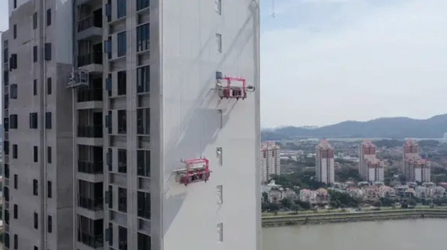 Ngoài ra, robot phun sơn tường ngoài cũng đang được sử dụng để thay thế các công việc nguy hiểm trên cao. Thiết bị có thể đạt hiệu suất tối đa khoảng 300 m² mỗi giờ, đồng thời giảm nguy cơ tai nạn lao động.
