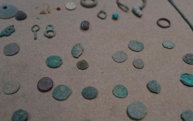 Các hiện vật được tìm thấy bao gồm 350 đồng xu các loại, 10 mảnh kim loại đồng, 2 mảnh vàng, đồ gốm và đồ tạo tác bằng đá gồm bình, tượng người và động vật, trục quay bằng đá, hạt cườm và các hiện vật có ý nghĩa lịch sử khác.