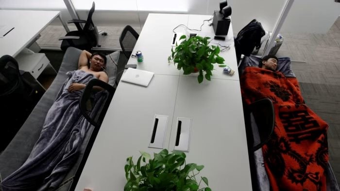 Nếu công nhân có ca đêm, giới công nghệ có văn hóa 996 – làm từ 9h sáng tới 9h tối, 6 ngày/tuần. Trên mạng xã hội, nhiều công ty như Tencent, DJI hay Huawei bố trí khu vực đèn giảm sáng, giường gấp và gối kê để nhân viên ngủ sau bữa trưa.