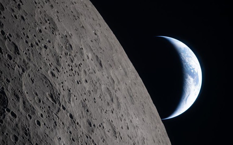 Ở phía trước là bề mặt Mặt Trăng hiện lên rõ nét, trong khi phía xa hơn, Trái Đất lơ lửng giữa không gian, với Úc và Châu Đại Dương được chiếu sáng bởi ánh mặt trời còn phần còn lại chìm trong bóng đêm. Đó là một cảnh tượng khiến phi hành đoàn xúc động.