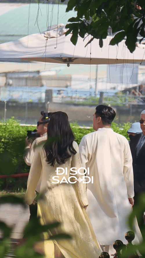 Gây chú ý là sự xuất hiện của vợ chồng Linh Rin - Phillip Nguyễn. Cặp vợ chồng bước vào cổng biệt thự trong trang phục áo dài ton-sur-ton, đồng điệu từ chất liệu đến phom dáng. Linh Rin ghi điểm với diện mạo ngày càng thăng hạng. Mẹ 1 con vẫn giữ được sắc vóc gọn gàng và phong thái sang trọng đúng chuẩn dâu hào môn. Không chỉ nhan sắc mà khí chất cũng ngày càng cuốn hút, nhẹ nhàng nhưng vẫn toát lên sự đẳng cấp rất riêng.