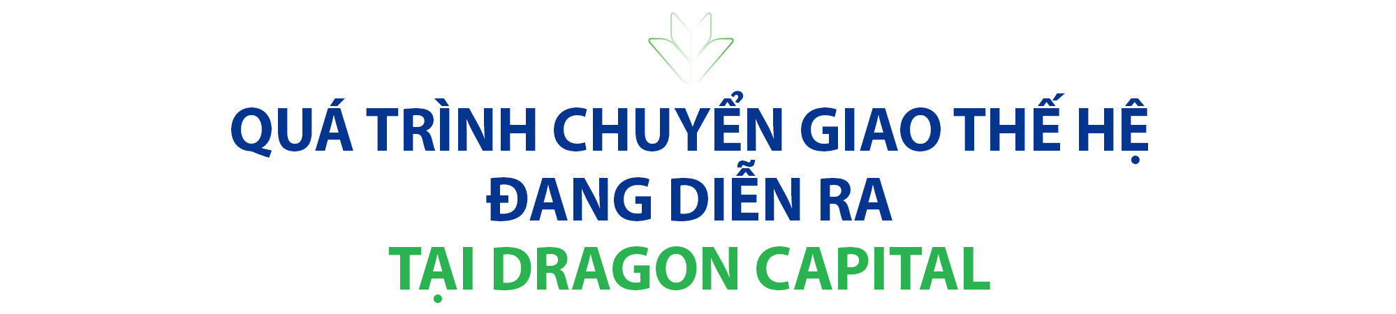 Đây là một quá trình mà Dragon Capital đang làm. Tôi và anh Dominic đều ở ngưỡng cộng trừ 60 tuổi, đây là thời điểm phù hợp để chuyển giao cho thế hệ trẻ nhưng chúng tôi vẫn luôn trong tâm thế "đứng mũi chịu sào" với trách nhiệm cao nhất của nhà sáng lập công ty, luôn sẵn sàng ủng hộ thế hệ kế thừa và tạo mọi điều kiện để từng bước giúp đội ngũ này bước ra thị trường đầy thách thức với sự tự tin cao nhất.