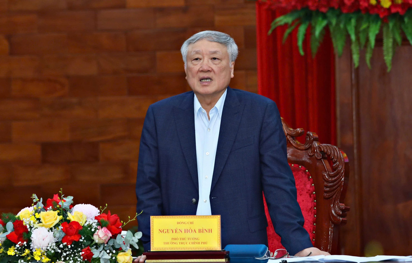 Phó Thủ tướng Thường trực Chính phủ Nguyễn Hòa Bình phát biểu kết luận buổi làm việc.