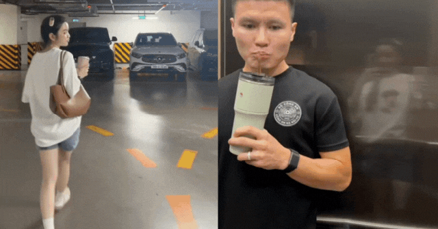Trong khi đó, Quang Hải lại mang đến một khoảnh khắc cực đáng yêu. Anh diện trang phục thể thao tối giản, tay cầm ly nước, thản nhiên uống từng ngụm khi bước vào thang máy. Biểu cảm dễ thương và thoải mái của chàng tiền vệ cho thấy sự an yên, hạnh phúc trong cuộc sống hôn nhân sau hơn nửa năm về chung một nhà. Chu Thanh Huyền tươi cười hớn hở chia sẻ: "Dậy sớm đưa chồng yêu đi làm, để chồng mua iPhone 17 cho".