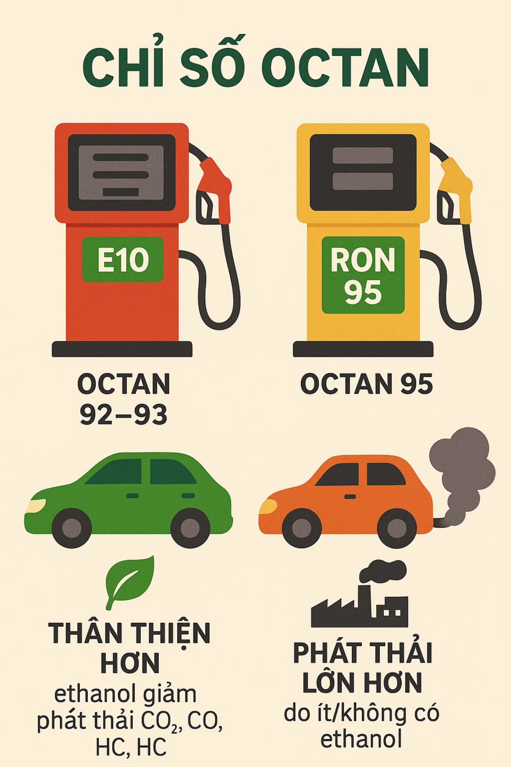 So sánh xăng E10 và RON 95: Thành phần, chỉ số octan và tác động môi trường