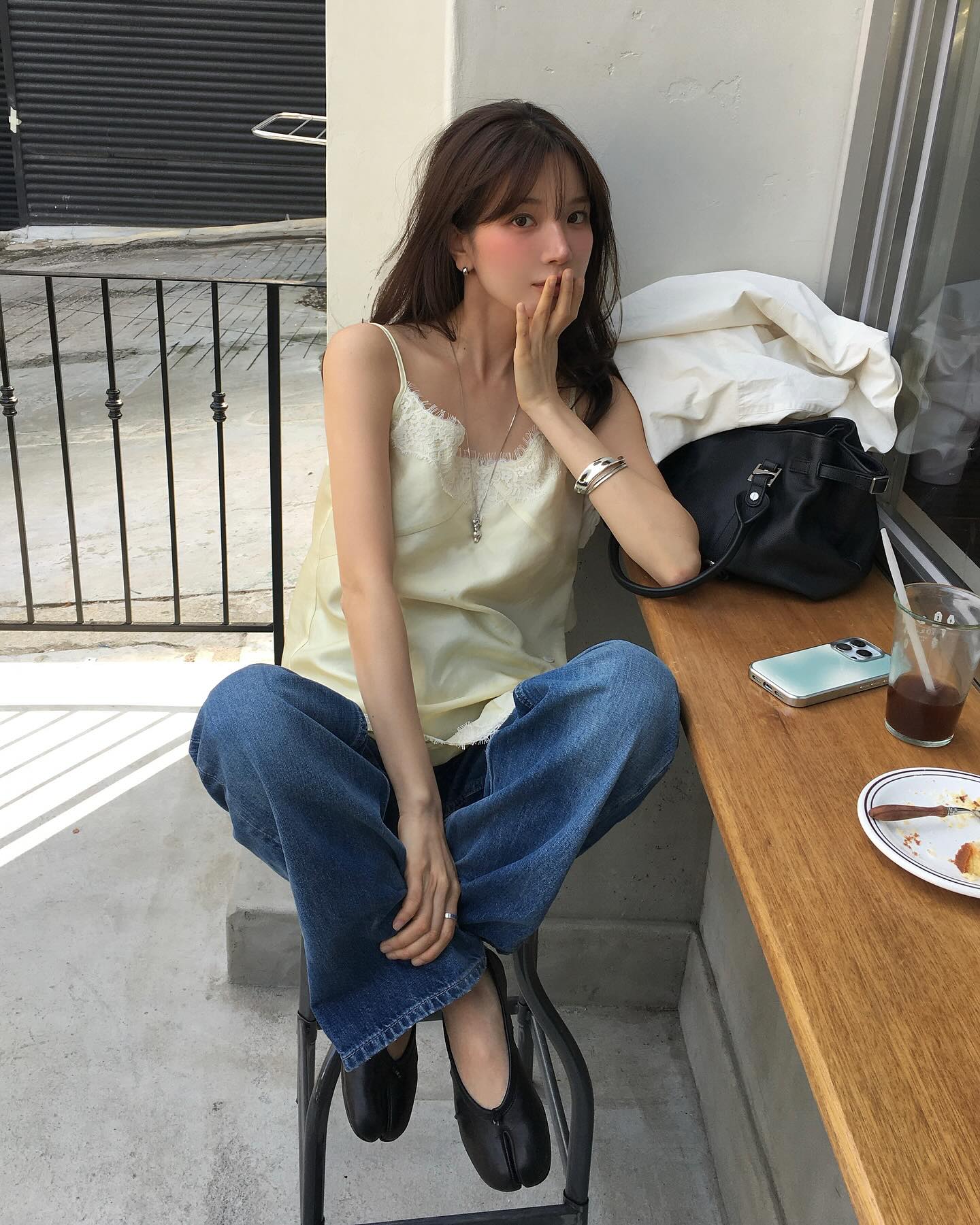 Không có item nào "đúng chất mùa hè" như áo hai dây lụa. Với đặc trưng mềm mại, rũ nhẹ theo cơ thể, kiểu áo này khi đi cùng các tông màu sáng như champagne, hồng phấn hay xanh bạc hà sẽ tạo hiệu ứng thanh thoát và quyến rũ một cách tinh tế. Áo hai dây lụa sáng màu rất dễ kết hợp: bạn có thể diện cùng quần ống rộng để tăng vẻ phóng khoáng, hoặc phối với chân váy satin đồng màu để tạo set đồ ton-sur-ton đầy thời thượng.