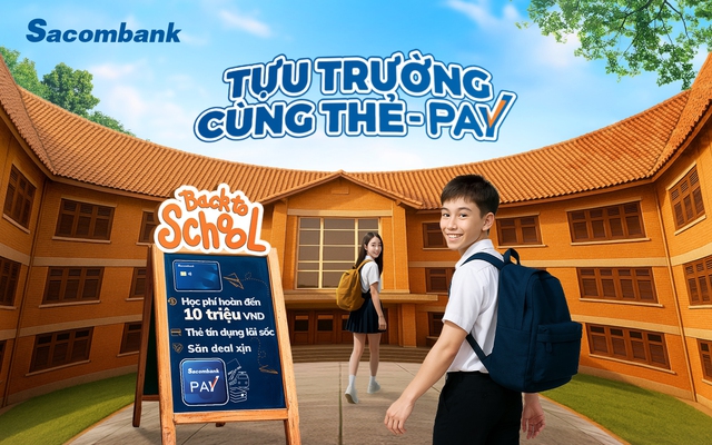 Từ nay đến hết 31/10/2025, Sacombank triển khai chương trình ưu đãi “Tựu trường cùng Thẻ - Pay” dành cho khách hàng thanh toán học phí và mua sắm mùa tựu trường qua ứng dụng Sacombank Pay hoặc thẻ tín dụng Sacombank. Chương trình mang đến hàng loạt ưu đãi giá trị, giúp phụ huynh, học sinh – sinh viên và khách hàng trẻ tiết kiệm chi phí, khởi động năm học mới trọn niềm vui.