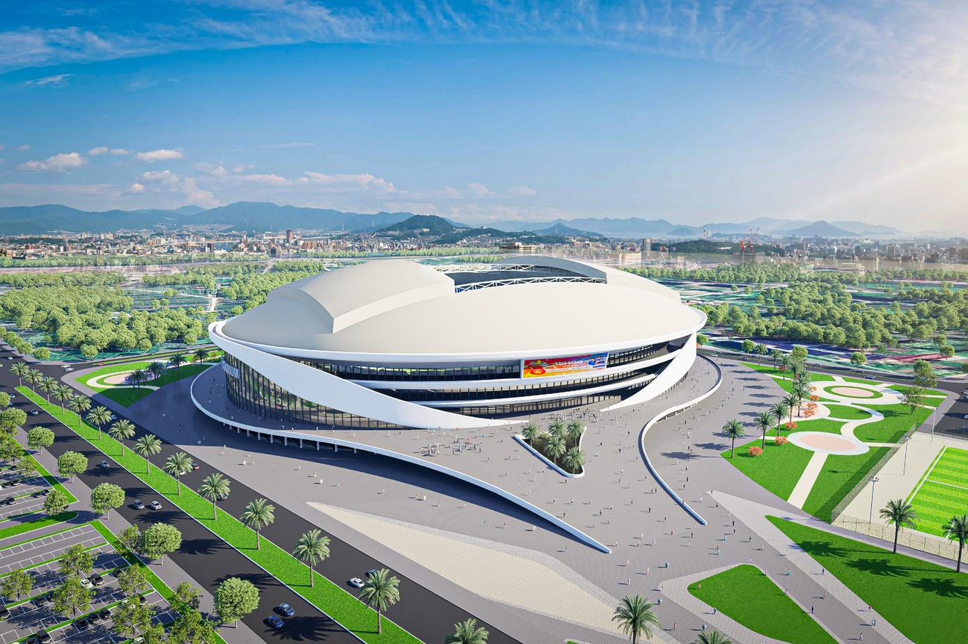 Bên cạnh sân vận động chính, phần phụ trợ cũng sẽ có quảng trường ngoài trời và bãi đỗ xe hiện đại rộng 18ha. Đây là sân vận động được thiết kế theo tiêu chuẩn FIFA, đủ điều kiện đăng cai các trận đấu World Cup và giải đấu khu vực.