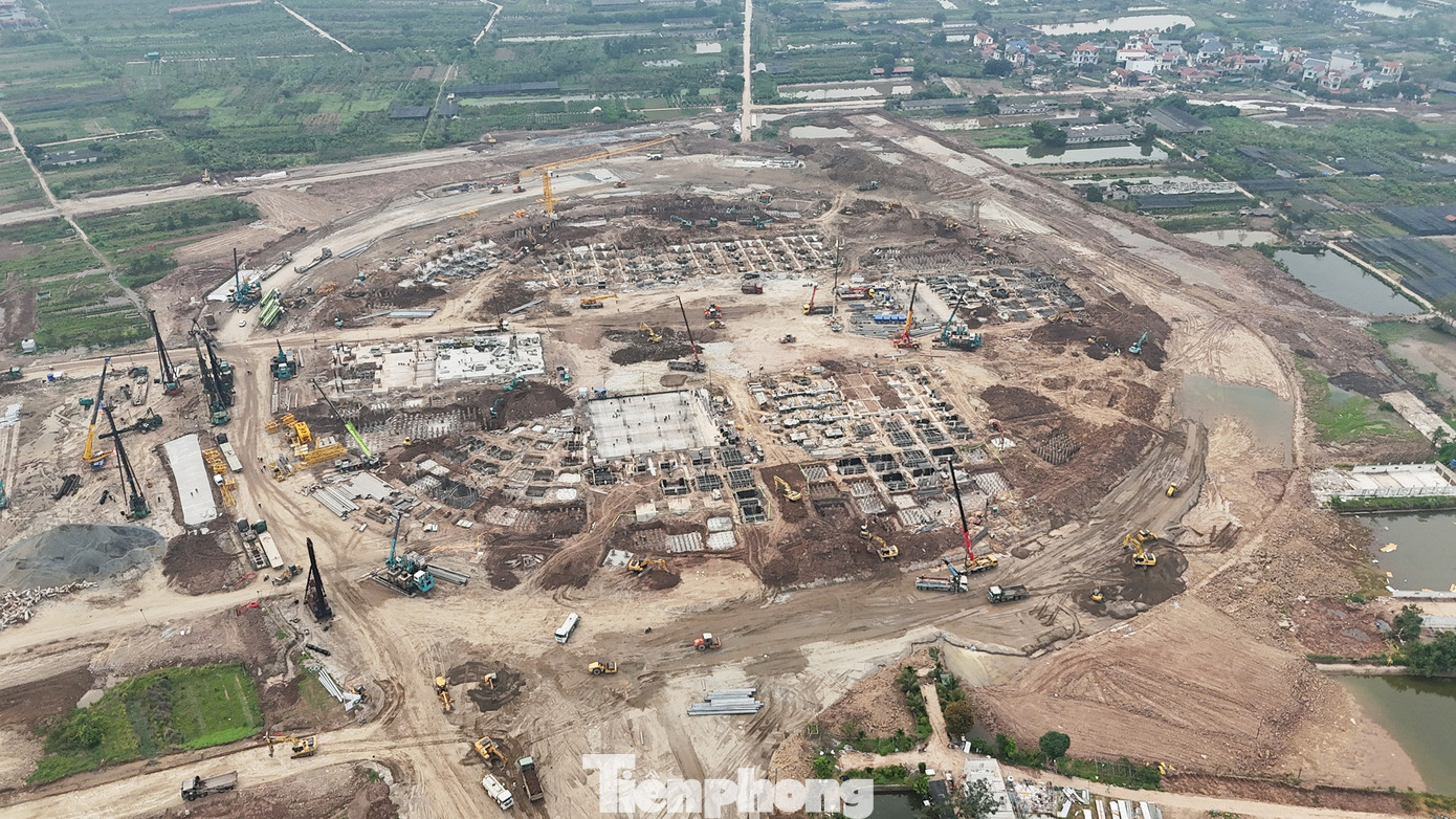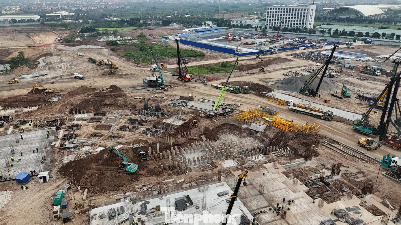 Sau 5 tháng thi công, đại công trường sân vận động PVF 60.000 chỗ tại Hưng Yên dần lộ diện, nhiều hạng mục thành hình, thi công ngày đêm để bảo đảm tiến độ.