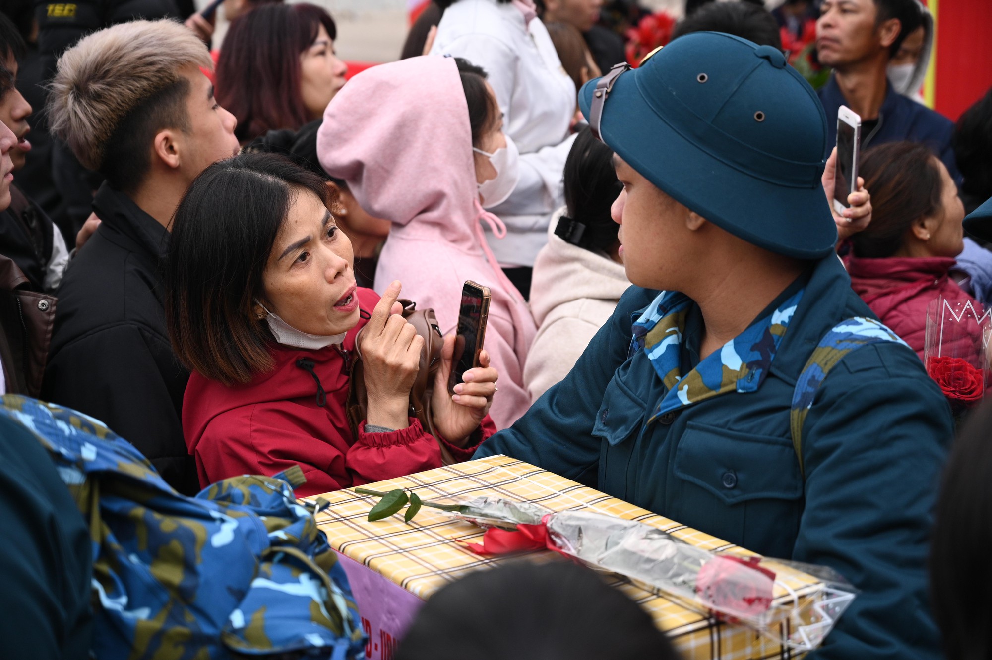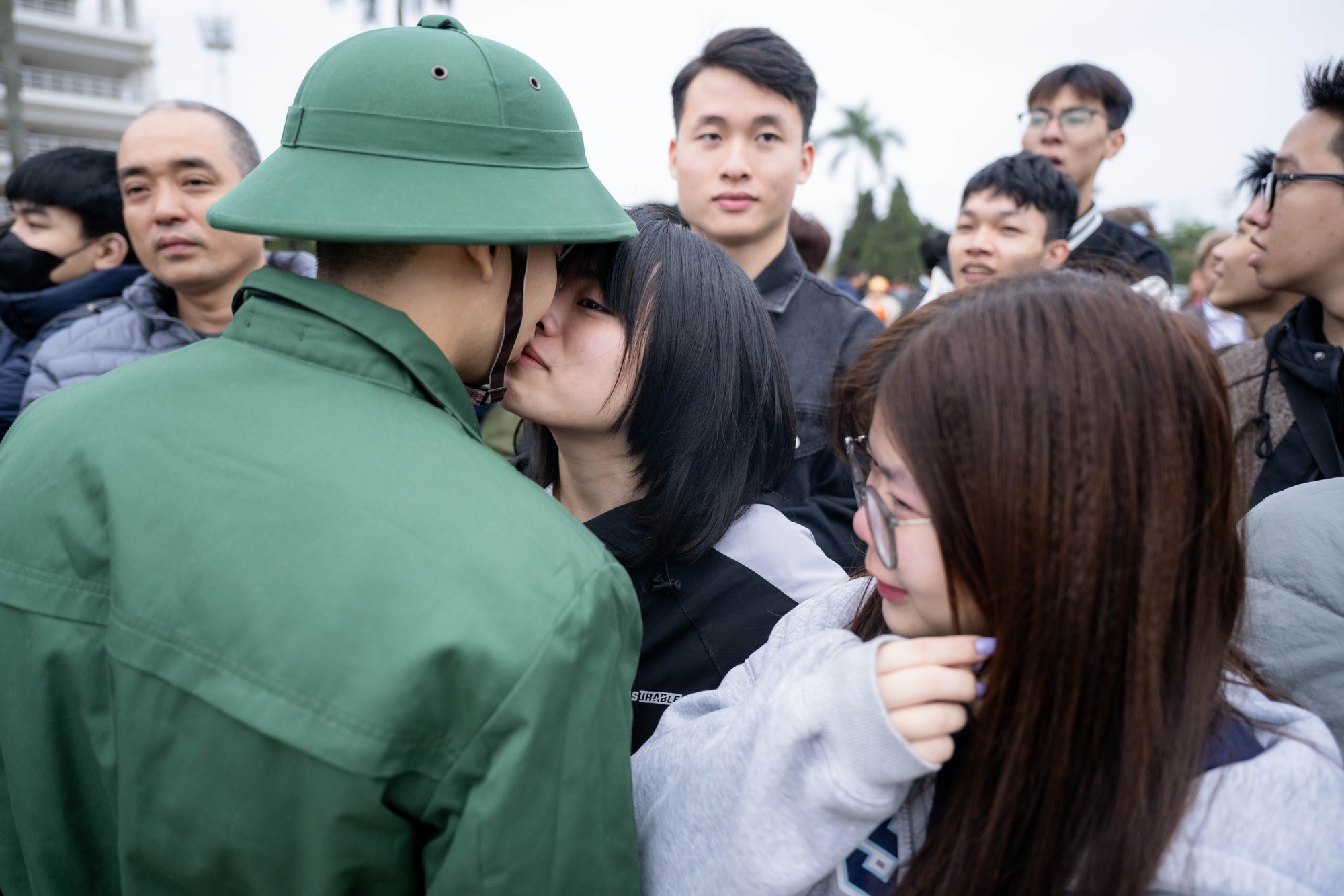Nhiều gia đình có mặt từ rất sớm, tranh thủ chụp những bức ảnh lưu niệm trước khi con em mình bước vào môi trường quân ngũ. Những lời dặn dò giản dị như giữ gìn sức khỏe, cố gắng rèn luyện, hoàn thành tốt nhiệm vụ được lặp lại trong từng cái ôm, ánh mắt.