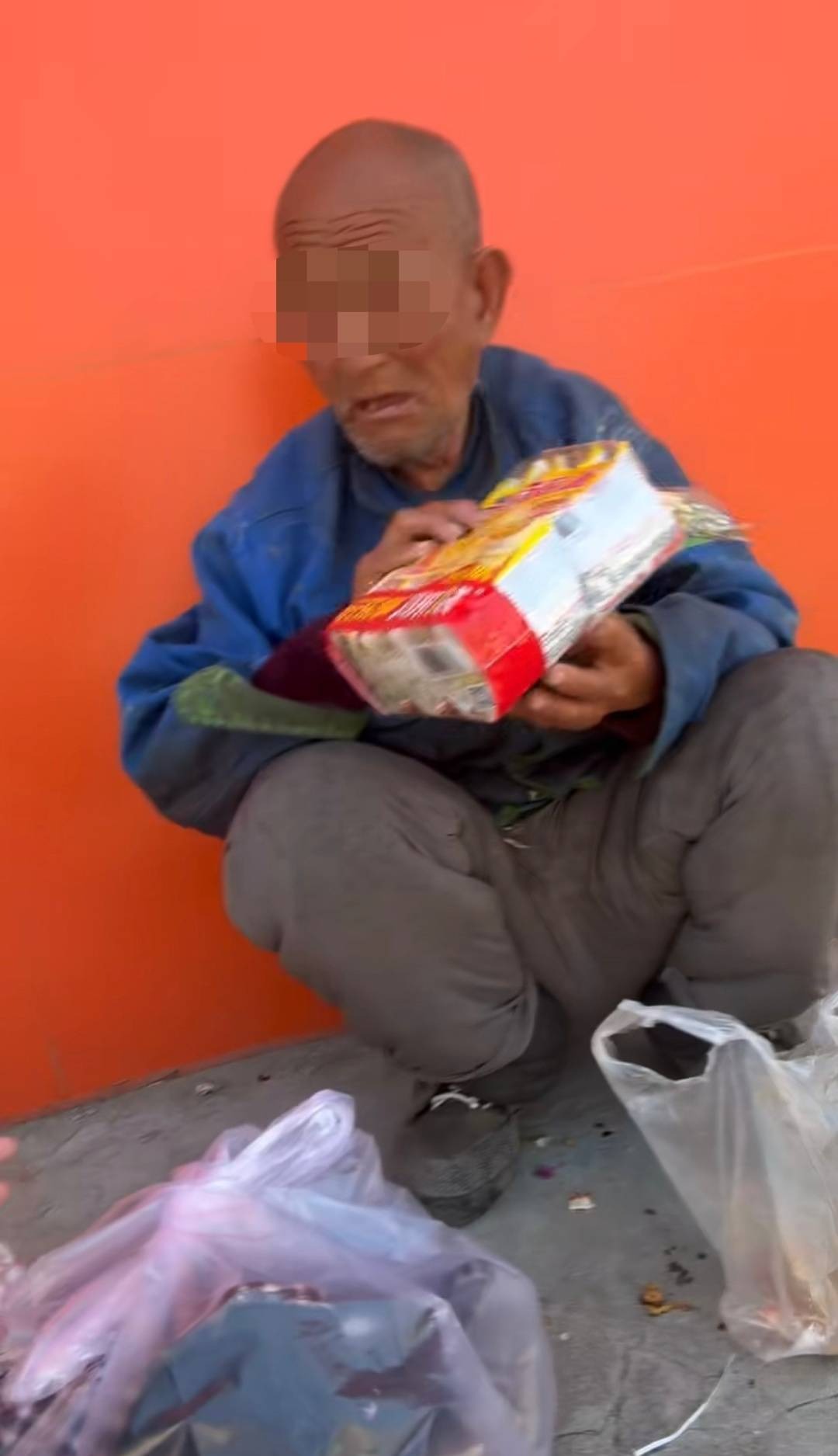Hình ảnh nam sinh họ Lưu mang đồ ăn cho cụ già được ghi lại