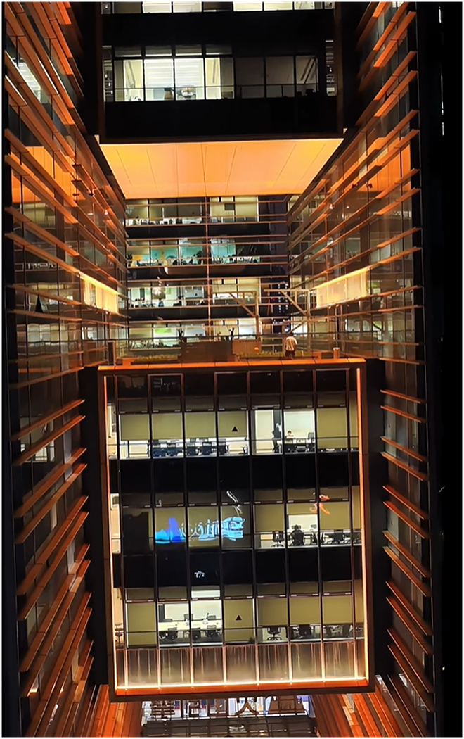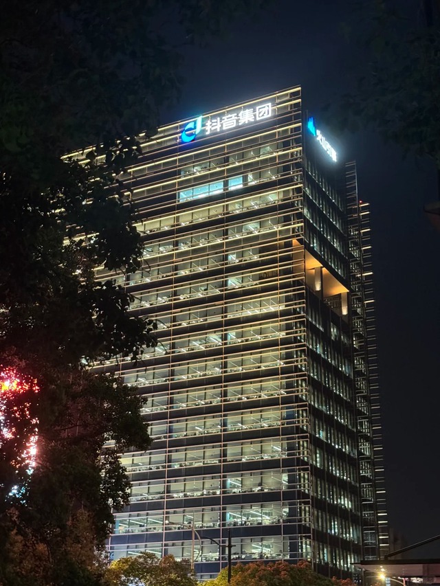 Trụ sở chính của tập đoàn Douyin tại Thượng Hải, Trung Quốc luôn sáng đèn cả ngày lẫn đêm.