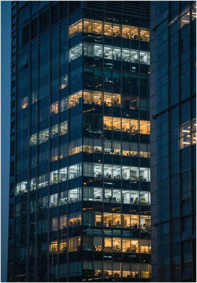 Ở các tập đoàn công nghệ lớn hay những tòa nhà thuộc khu trung tâm tài chính, khung cảnh ấy cũng chẳng hề kém cạnh. Dường như ai cũng đang bị cuốn vào một guồng quay chung, nơi thời gian làm việc kéo dài đến tận đêm khuya trở thành điều bình thường. Ánh đèn vẫn sáng sau mỗi ô cửa kính, bàn phím vẫn gõ liên hồi, những cuộc họp muộn và bản báo cáo chưa kịp hoàn tất khiến nhiều người buộc phải ở lại văn phòng lâu hơn dự kiến.