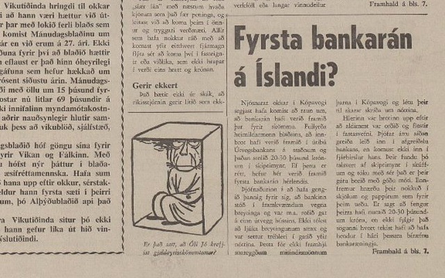 Theo bài báo thời điểm đó, đây có thể là “vụ cướp ngân hàng đầu tiên” ở Iceland. Tuy nhiên, ông Gunnar Runar Sveinbjornsson – phát ngôn viên cảnh sát Reykjavik – giải thích rằng nhóm thiếu niên khoảng 14 tuổi này không sử dụng bạo lực hay đe dọa, nên đúng hơn phải gọi là “vụ trộm ngân hàng đầu tiên”.