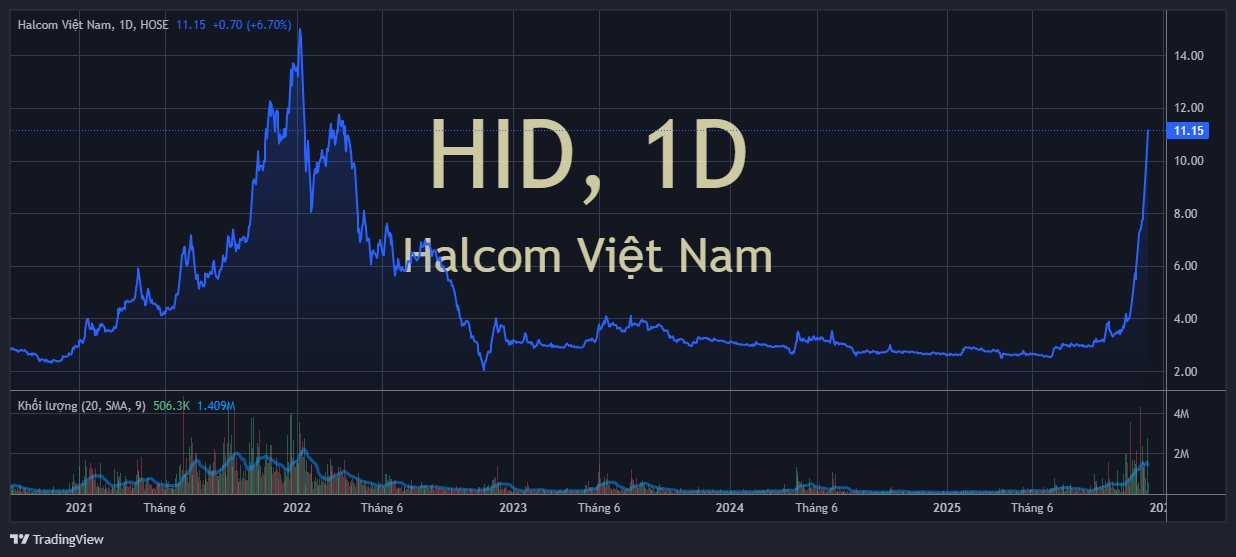 Chốt phiên 8/12, thị giá HID tăng 6,7% lên mức 11.150 đồng/cp với hơn nửa triệu cổ phiếu được “sang tay”. Từ vùng giá 4.000 đồng/cp hồi đầu tháng 11 tới nay, cổ phiếu HID đã chứng kiến mức tăng giá gần 200% (trong đó có tới 14 phiên tăng trần), qua đó tiến lên đỉnh gần 4 năm (kể từ tháng 3/2022).