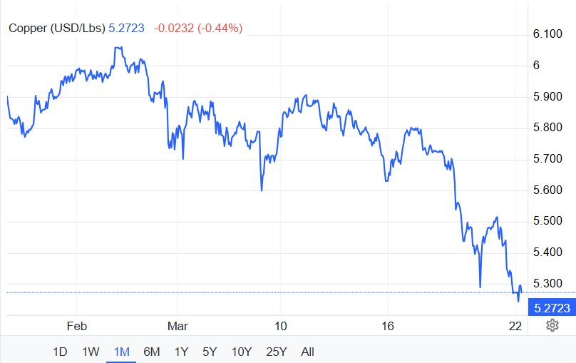 Giá dầu và khí đốt leo thang đang làm dấy lên lo ngại chi phí sản xuất toàn cầu tăng mạnh, qua đó ảnh hưởng tiêu cực đến tăng trưởng kinh tế. Trong bối cảnh đó, nhiều nhà đầu tư lo ngại các ngân hàng trung ương có thể duy trì chính sách tiền tệ thắt chặt lâu hơn, gây sức ép lên nhu cầu đối với các kim loại công nghiệp như đồng.