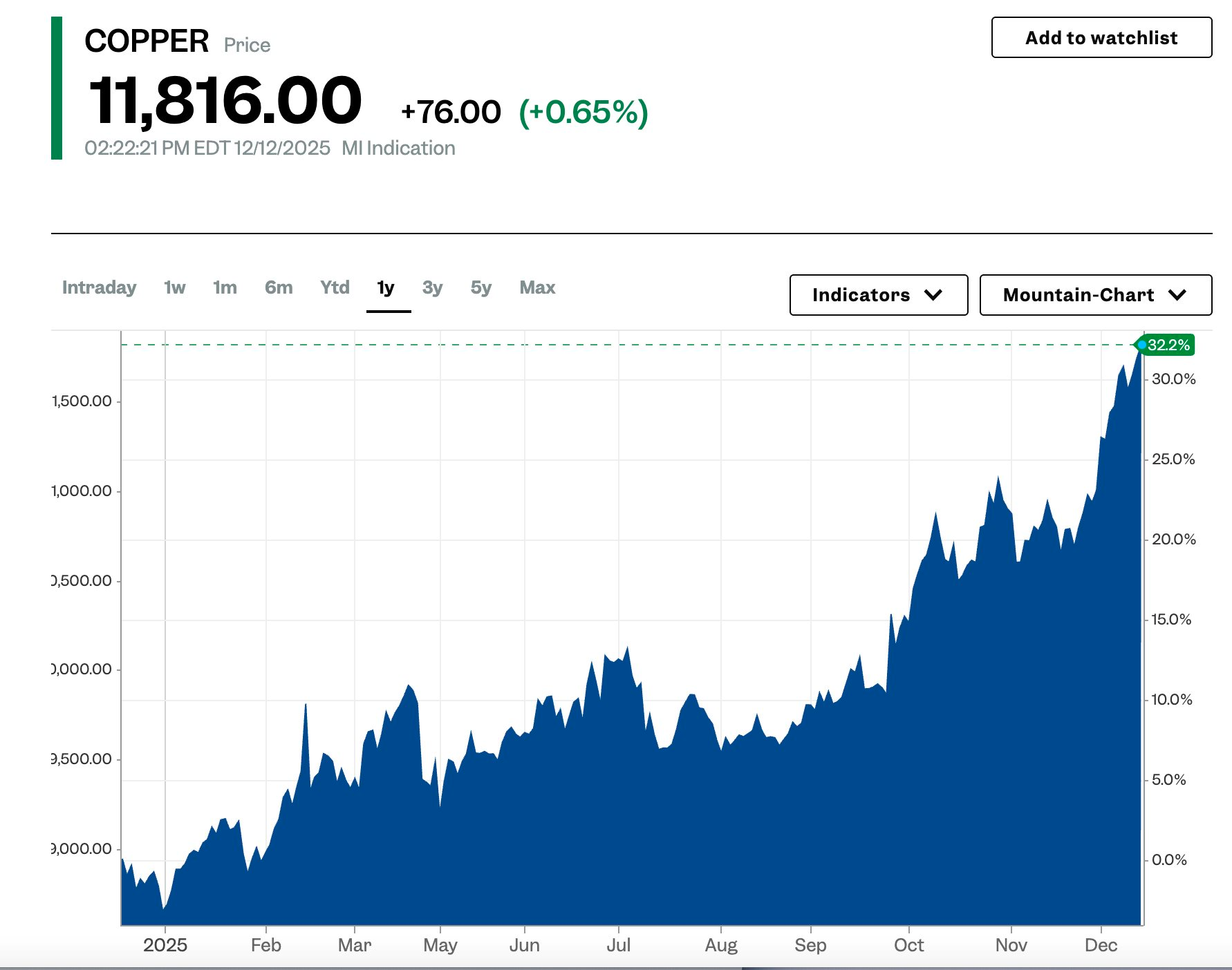 Đồng là một trong những kim loại tăng giá mạnh trong năm 2025.