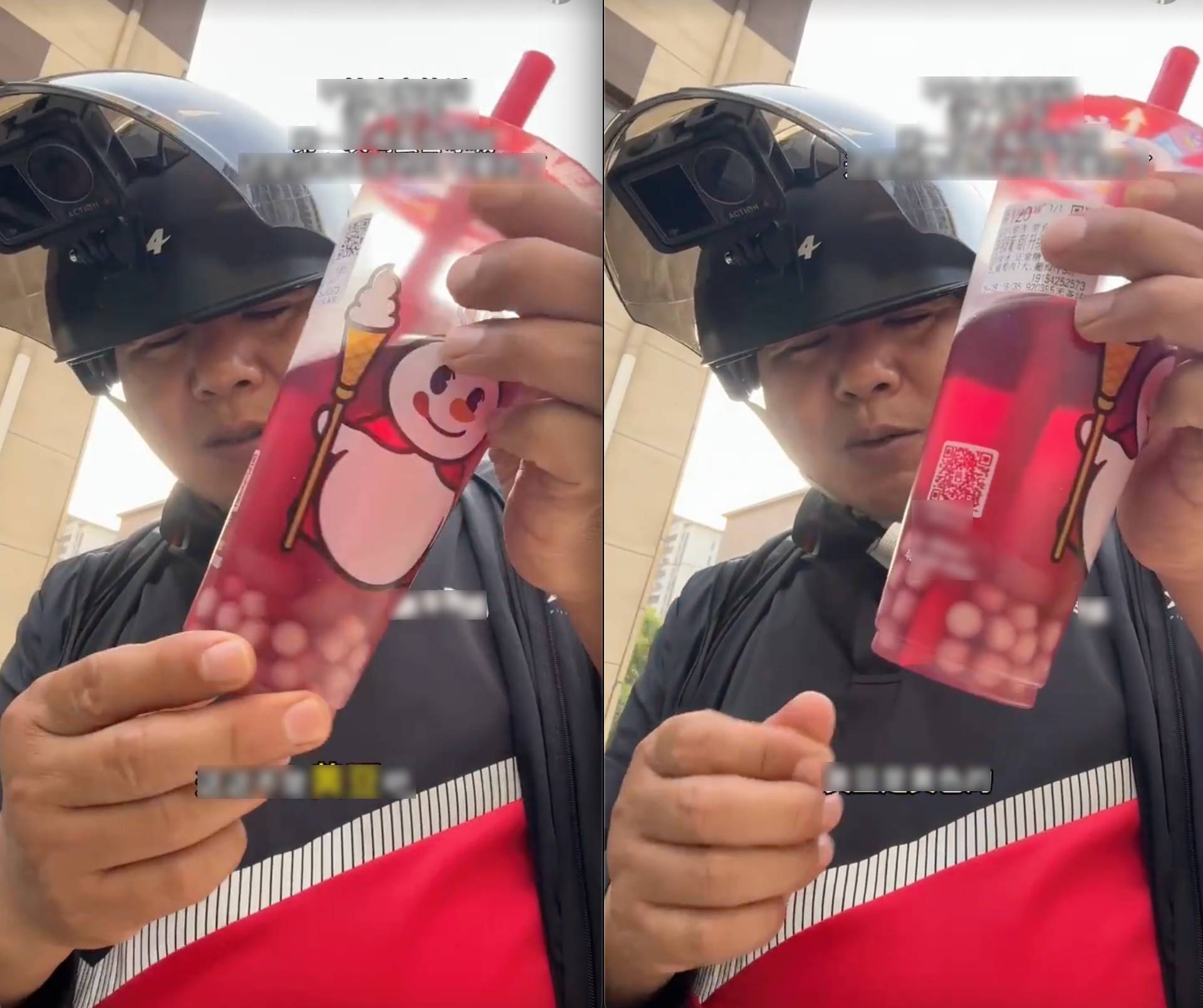 Video được đăng tải trên Xiaohongshu, sau đó được cư dân mạng xứ Trung lan truyền rần rần. Trong video, người đàn ông mặc áo khoác giao hàng đứng bên lề đường, trên tay là 1 cốc đồ uống còn nhìn rõ những hạt trân châu bên trong. Nội dung video khiến nhiều người sững lại: "Đừng cười nhé, đây là lần đầu tiên tôi uống Mixue ở tuổi 50. Khách hàng điền sai địa chỉ và cuối cùng không muốn lấy nữa."