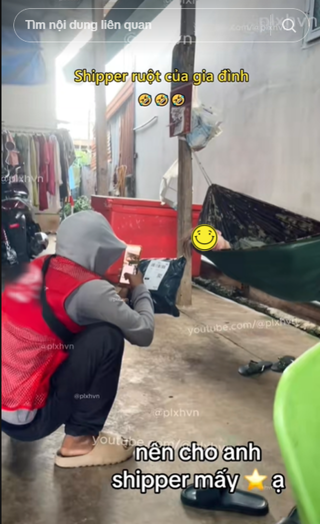Trước khoảnh khắc hài hước này, chủ nhà đang có mặt cũng không khỏi buồn cười, lập tức rút điện thoại ra ghi hình rồi đăng tải lên mạng sau đó kèm dòng chú thích “Shipper ruột của gia đình”, từ đó nhanh chóng tạo hiệu ứng lan tỏa.