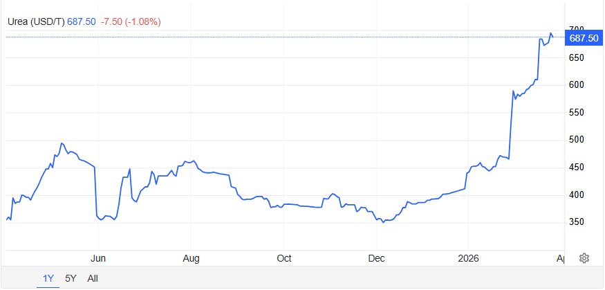 Giá phân bón Ure đã gần chạm mức 700 USD/tấn, cao nhất từ tháng 10/2022.