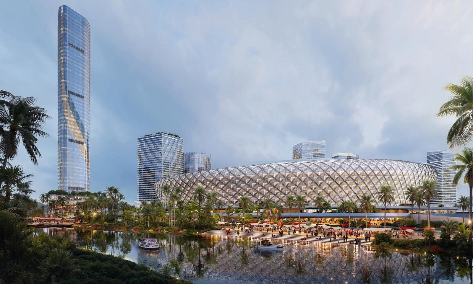 Điểm nhấn lớn nhất của dự án là sân vận động trung tâm có quy mô 24 ha, tổng mức đầu tư khoảng 35.000 tỷ đồng, sức chứa lên tới 70.000 chỗ ngồi. Công trình được thiết kế với mái che linh hoạt có thể đóng – mở tự động, tích hợp giải pháp cách âm hiện đại và hệ thống điều hòa nhiệt độ có khả năng điều chỉnh theo từng khu vực khán đài.