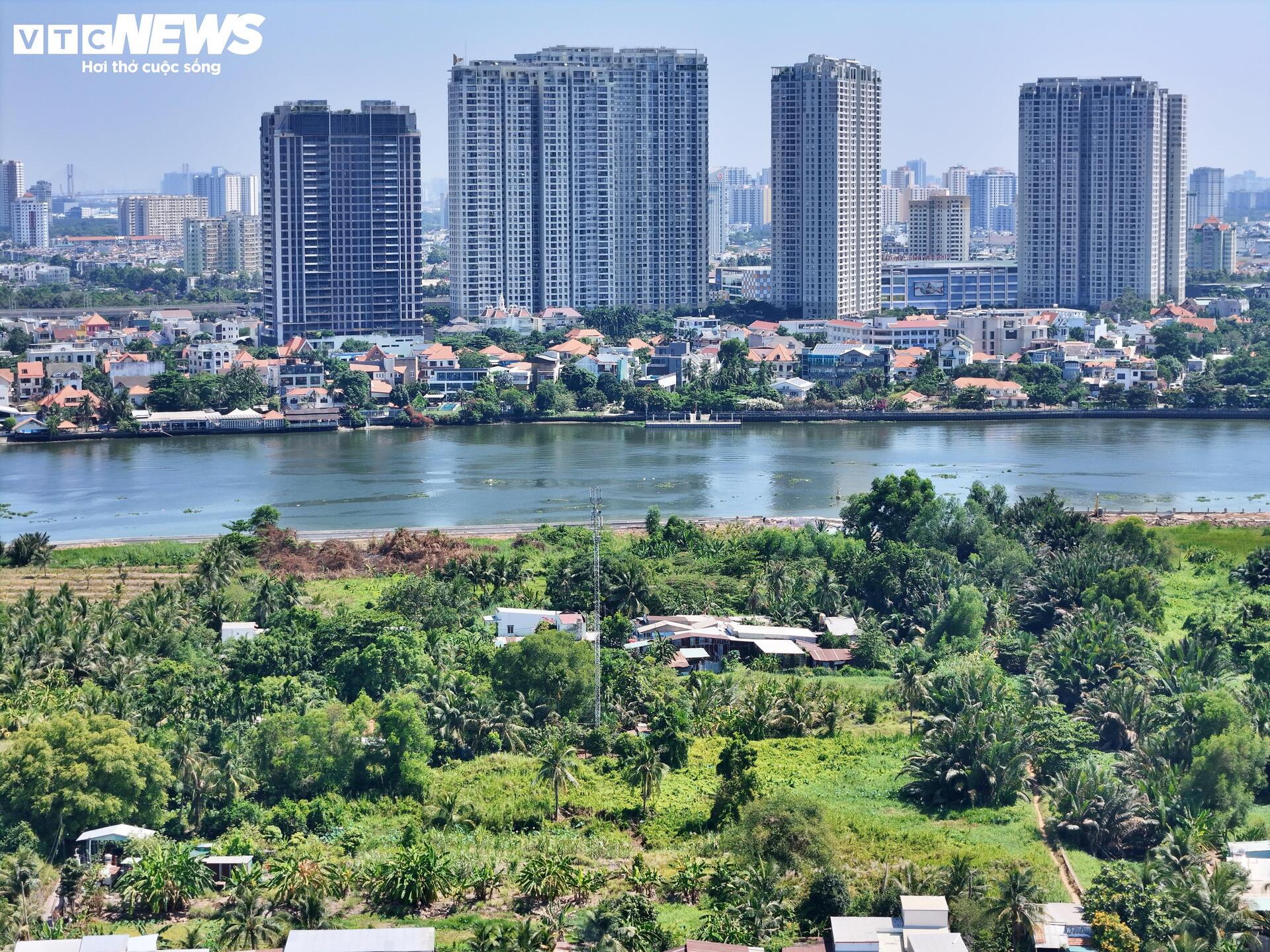 Ghi nhận của PV Báo Điện tử VTC News, bán đảo Thanh Đa có ba mặt giáp sông Sài Gòn - sở hữu vị trí được đánh giá là “đất vàng” hiếm có, nhưng bên trong bán đảo lại là bức tranh đan xen giữa nhà thấp tầng xuống cấp, ao hồ, vườn cây và những bãi đất trống bị bỏ hoang.