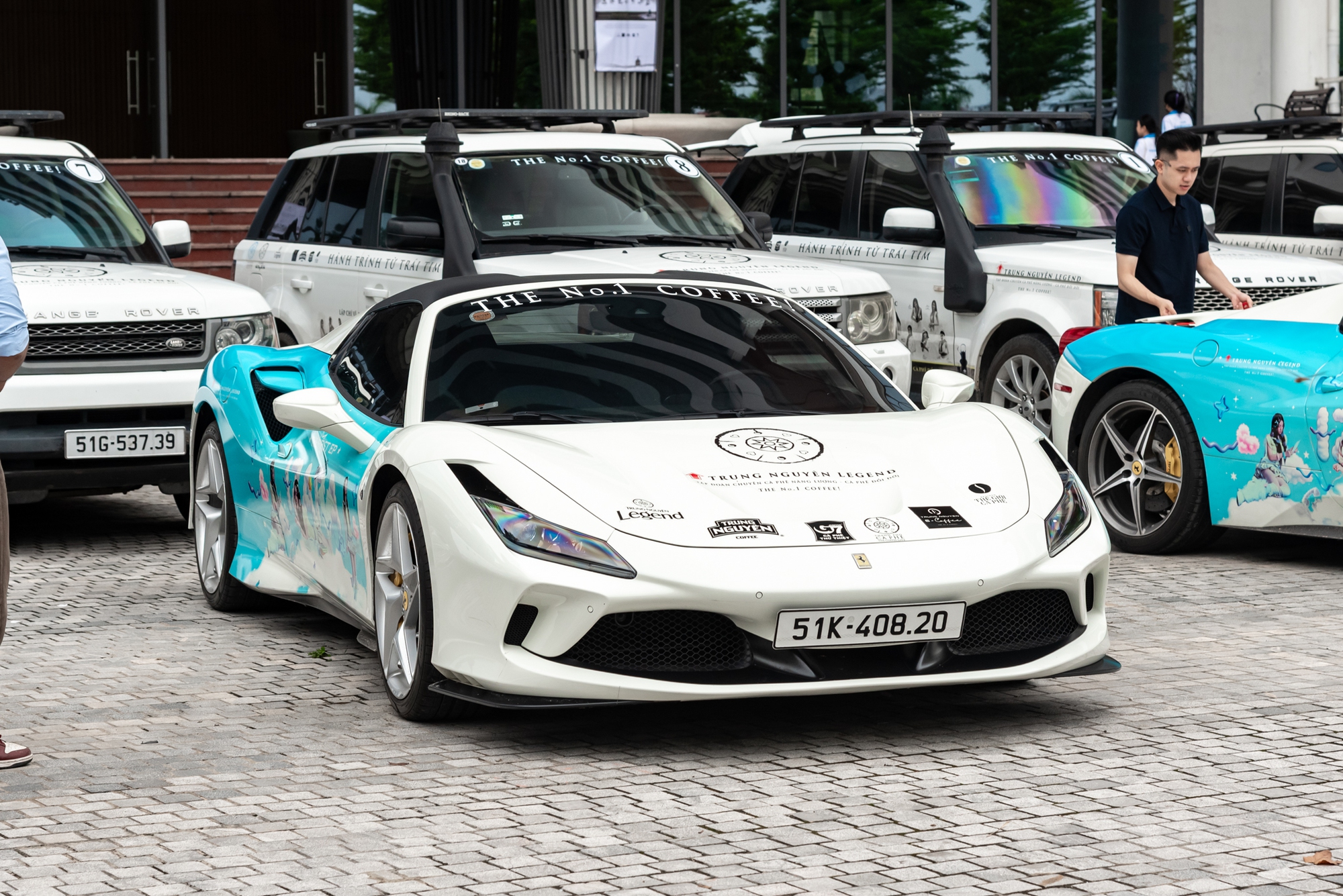 Khác với chặng hôm qua chủ yếu là đội hình 16 chiếc Range Rover vận hành, hoạt động của ngày hôm nay còn có sự góp mặt của bộ đôi xe siêu sang Rolls-Royce Phantom cùng cặp siêu xe Ferrari F8 Spider và 458 Spider. Trước đó, 4 chiếc siêu xe và xe siêu sang này từng xuất hiện tại TP.HCM và Tây Nguyên trước khi được vận chuyển ra Hà Nội.