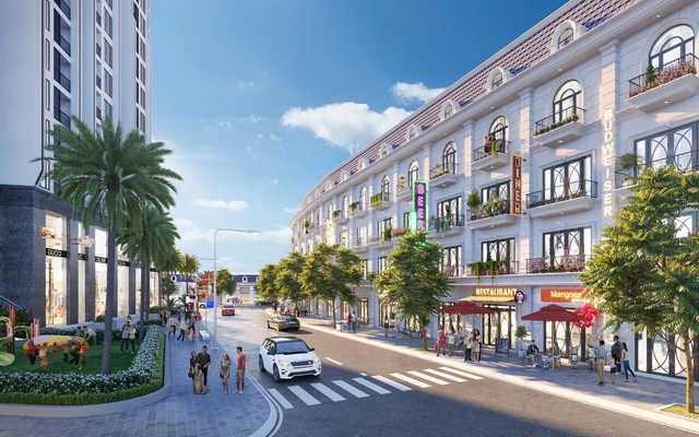 Các căn shophouse tại dự án được thiết kế linh hoạt với diện tích đa dạng từ 88m², 90m² đến 120m², một số lô góc có diện tích lớn hơn. Mặt tiền rộng 5 – 6m, kết cấu 3 – 5 tầng cho phép kết hợp kinh doanh tại tầng 1 và không gian ở hoặc cho thuê tại các tầng trên. Tiêu chuẩn bàn giao xây thô bên trong, hoàn thiện mặt ngoài cùng sổ đỏ từng lô giúp khách hàng yên tâm sở hữu.