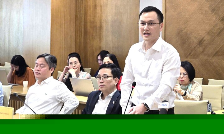Ông Nguyễn Anh Cương, Phó Cục trưởng Cục Viễn thông, trả lời tại cuộc họp báo. (Ảnh: Anh Thịnh)
